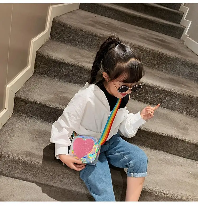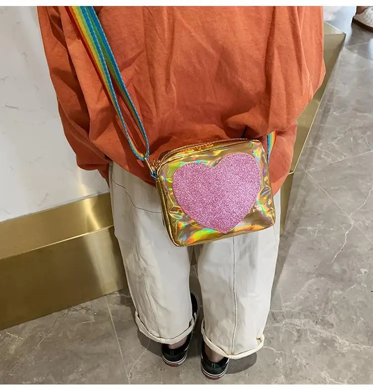 Мини-сумки для девочек, сумки через плечо с лазерным сердцем для ма...