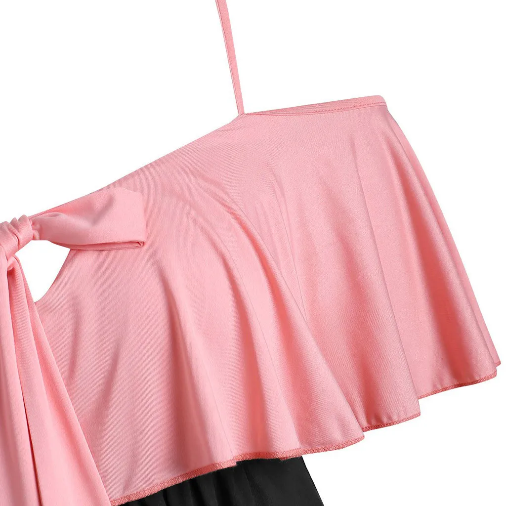 Блузка женская с открытыми плечами, однотонный Повседневный Топ с Туника большого размера, с оборками и бантом, лето 2020