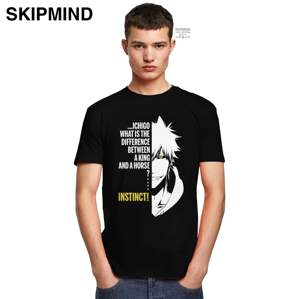 Мужская футболка из чистого хлопка, с круглым вырезом и коротким рукавом, в стиле японского аниме