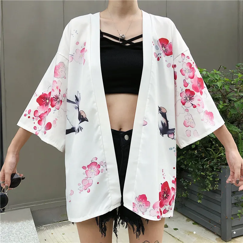 Новинка 2020, кардиган в стиле Харадзюку, японское кимоно, модное азиатское летнее черное белое свободное платье для девочек, блузка, топы, повседневные женские кимоно для костюмированной вечеринки