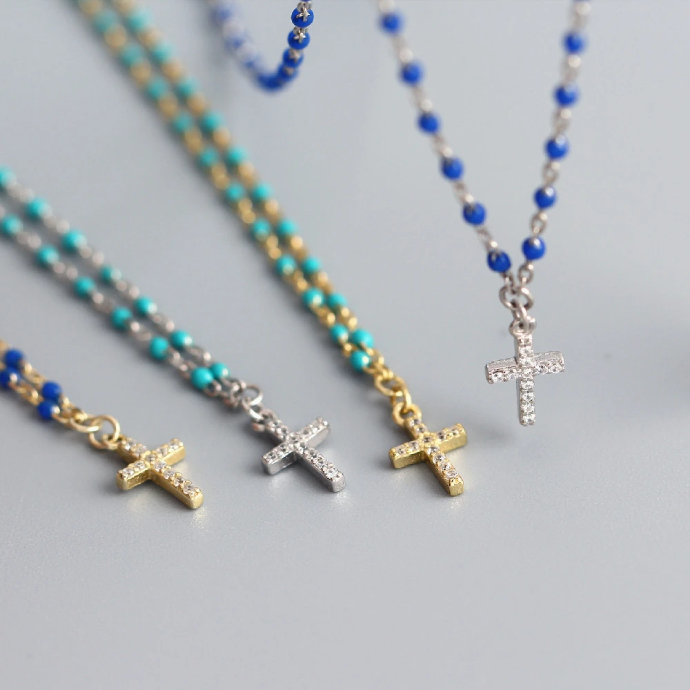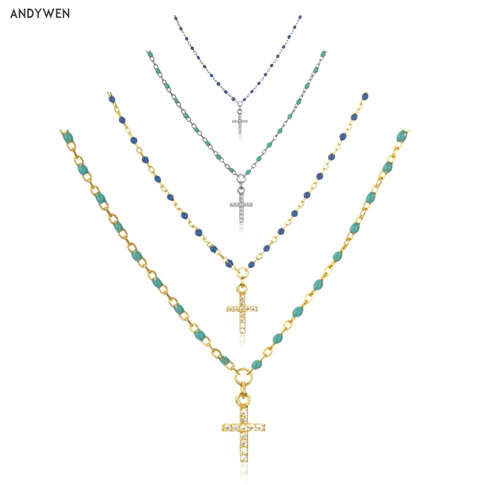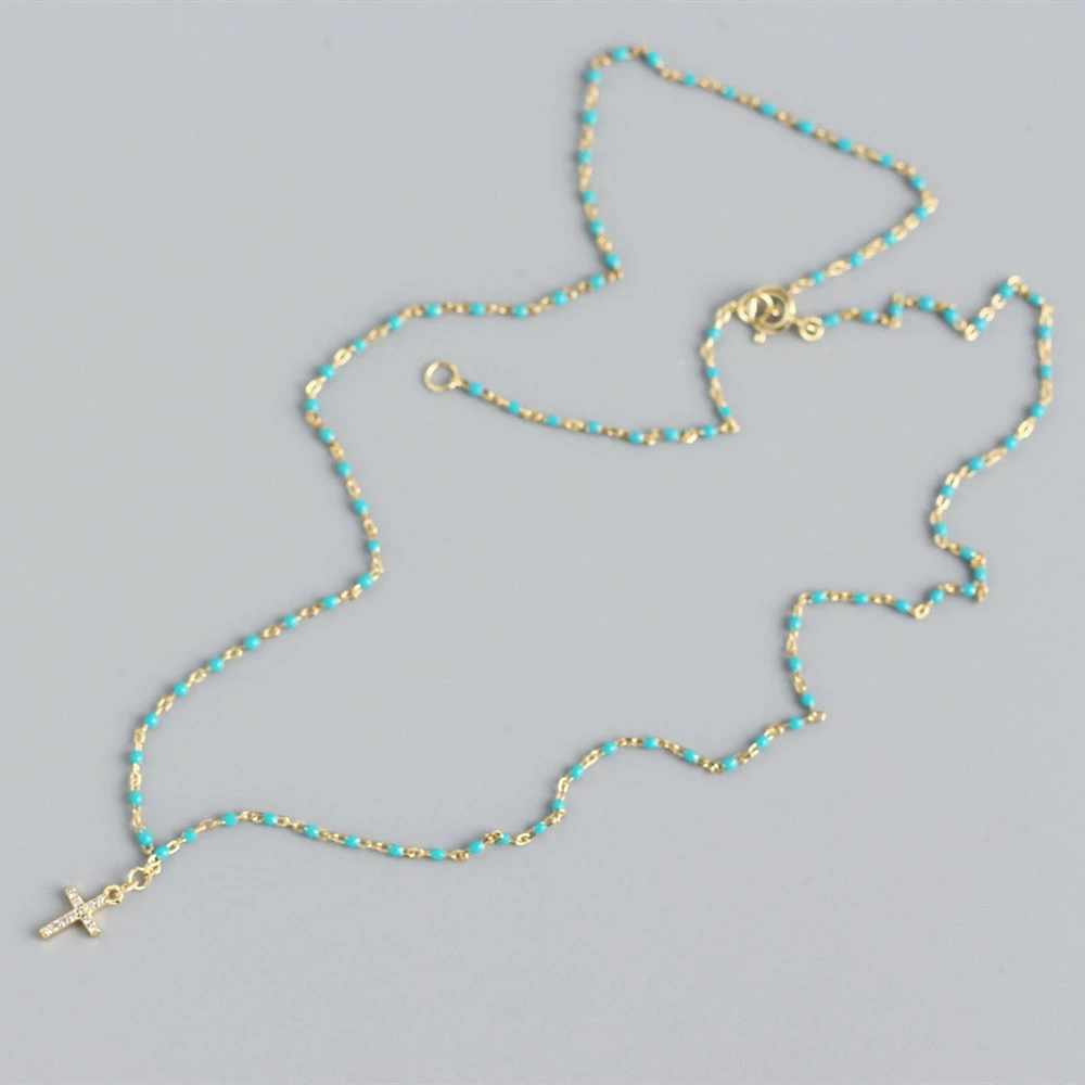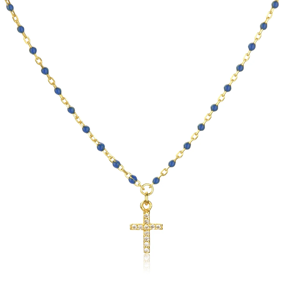 FLOLA Многоцветный хрустальный крест ожерелье для женщин золотое ож...