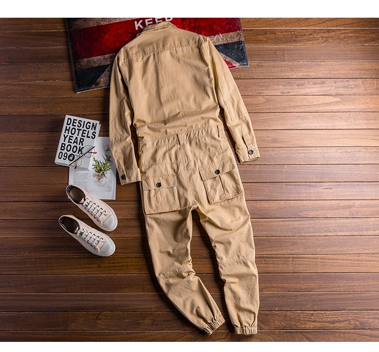 Мужские комбинезоны с длинным рукавом, с карманами, спортивные костюмы, повседневные Комбинезоны, костюм-комбинезон штаны, черный, армейский, зеленый, хаки