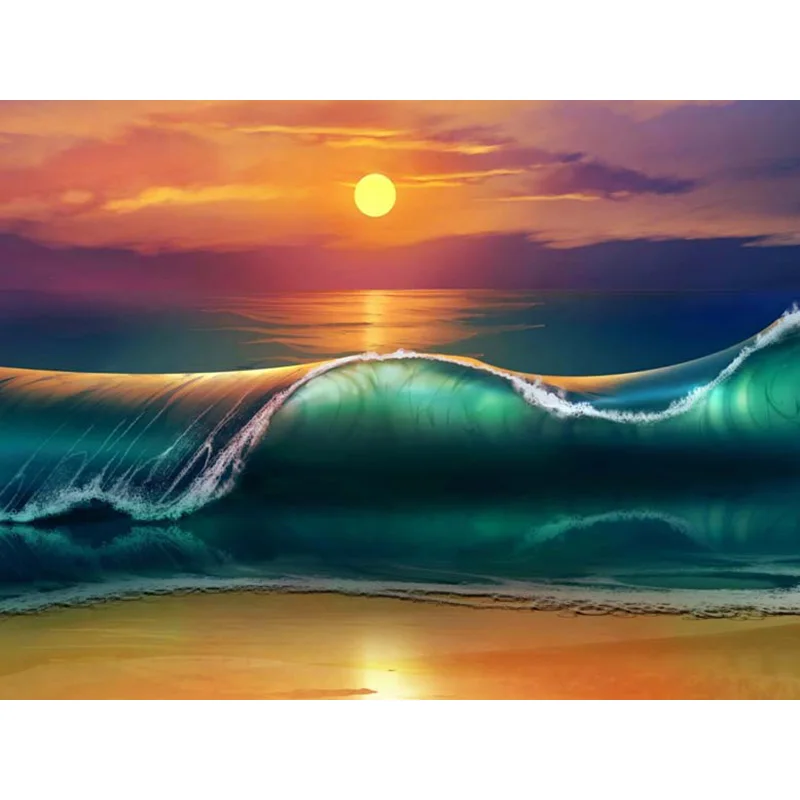 Алмазная картина 5D "сделай сам", морские волны, пейзаж, круглая квадратная мозаика, вышивка крестиком, домашний декор G30, Алмазный вышитый ночной