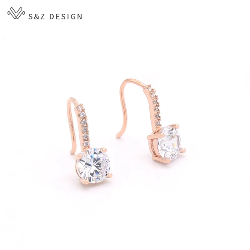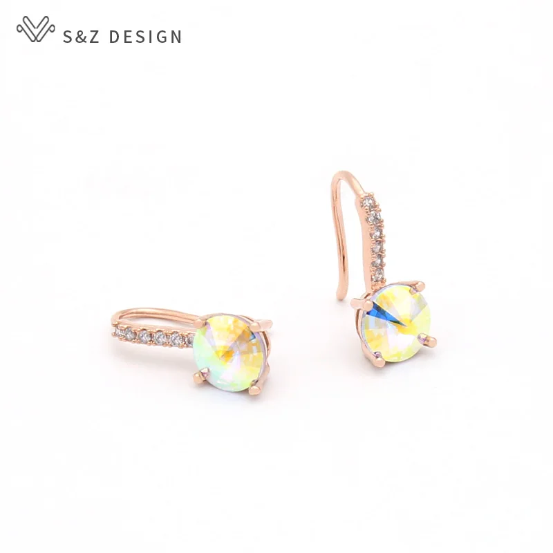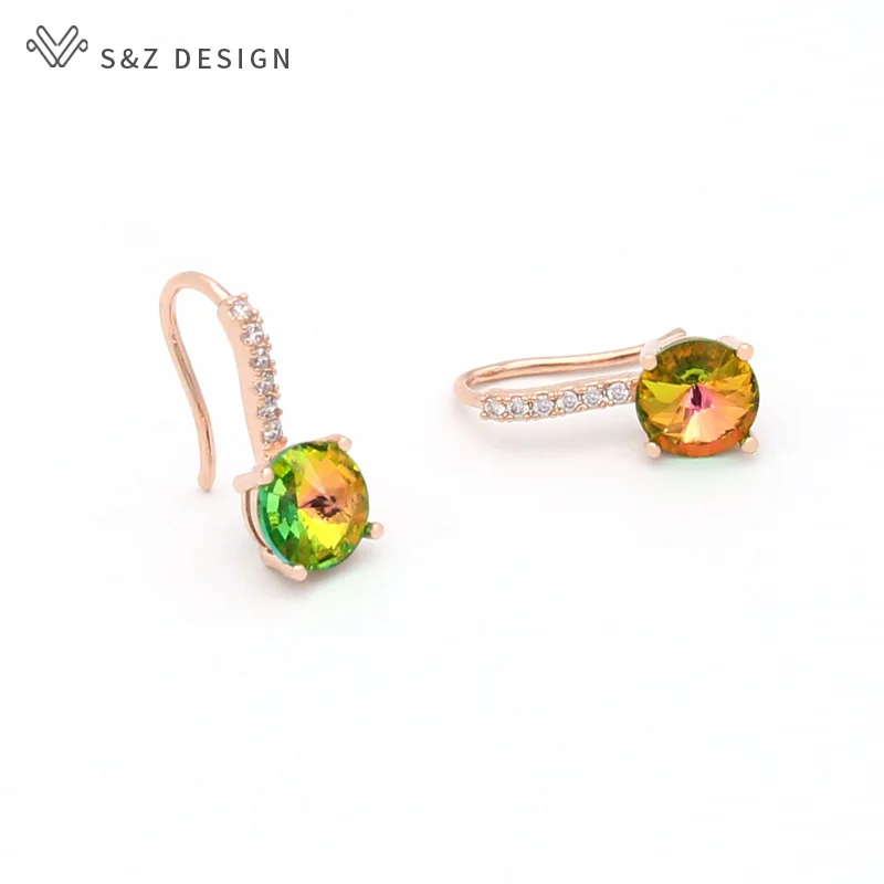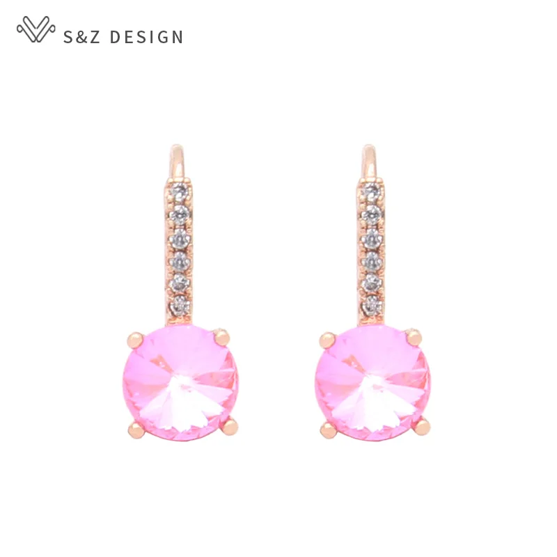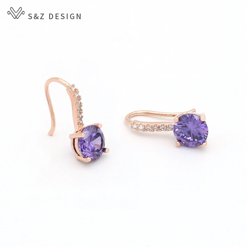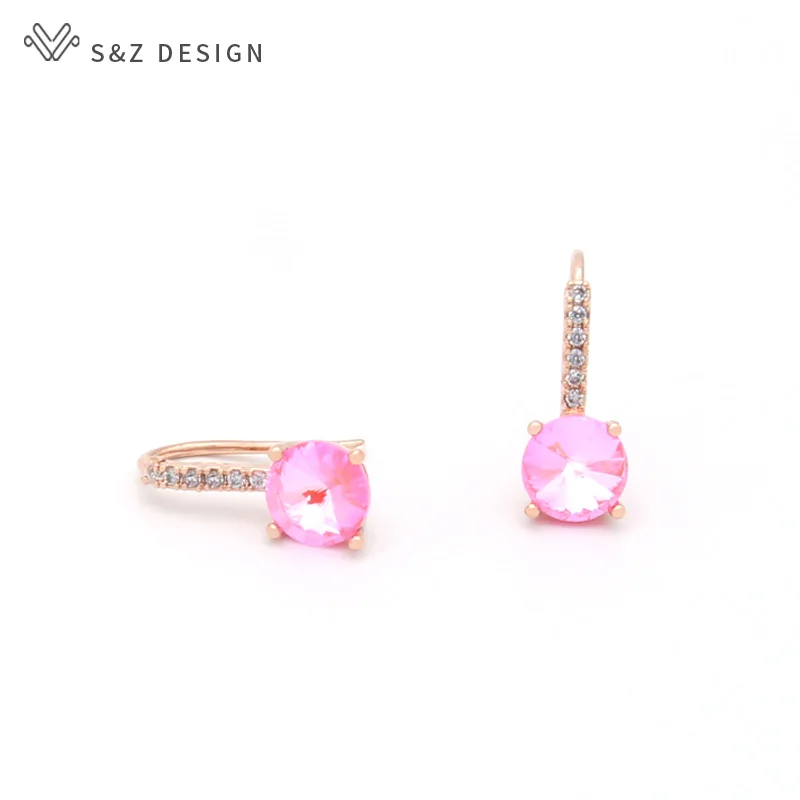 Женские круглые серьги-подвески S Z, Разноцветные серьги из розового золота 585 пробы с кубическим цирконием, свадебные украшения