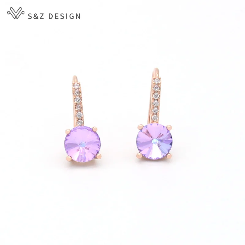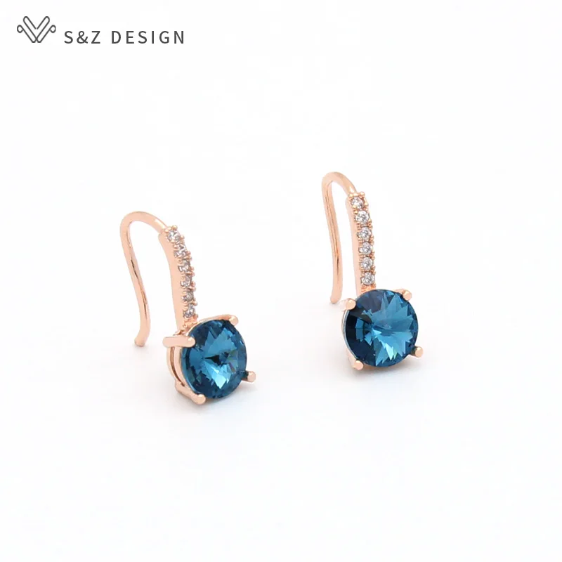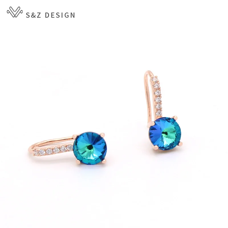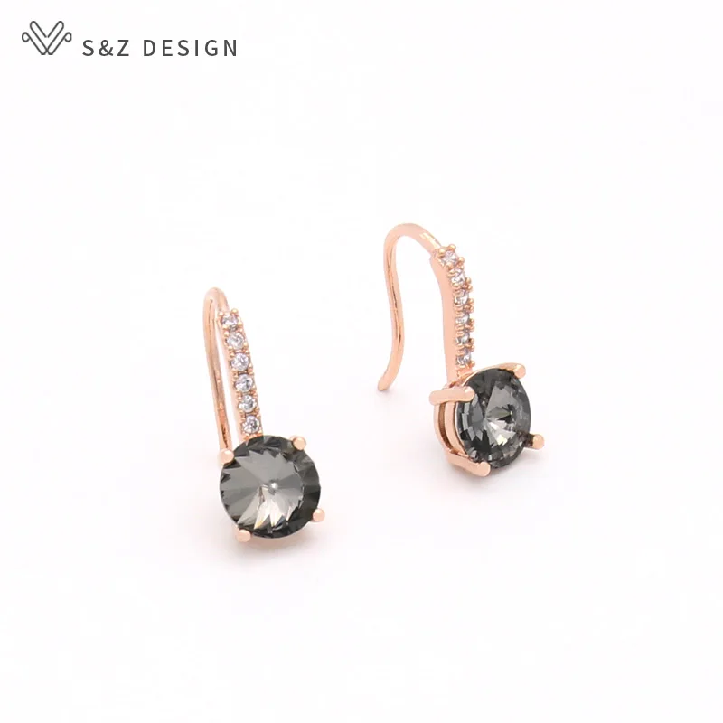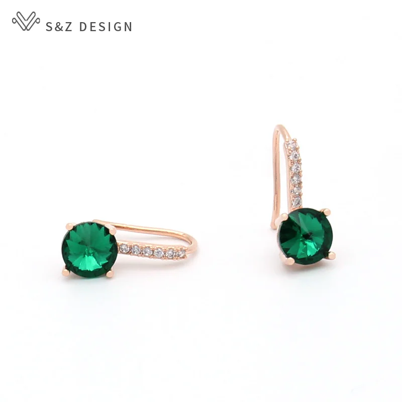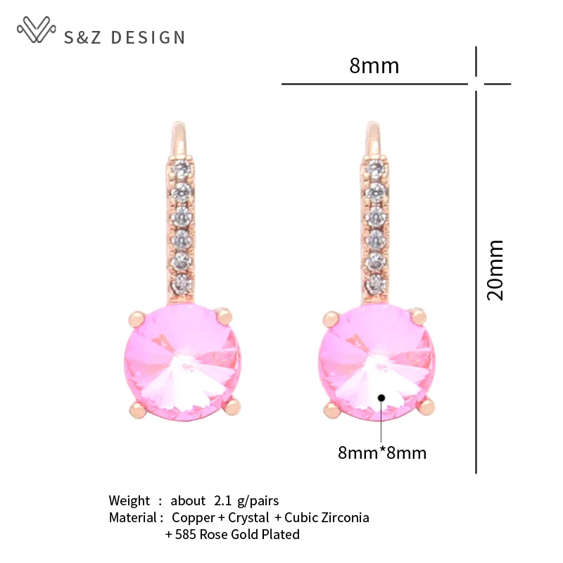 Женские круглые серьги-подвески S Z, Разноцветные серьги из розового золота 585 пробы с кубическим цирконием, свадебные украшения