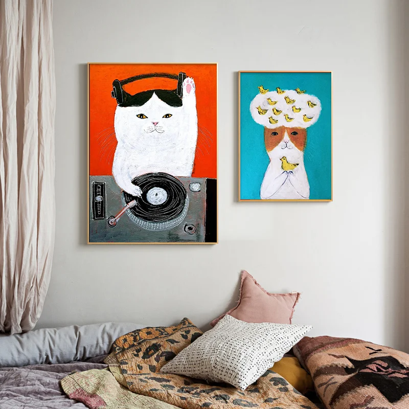 Современная Абстрактная красочная животная забавная кошка Настенная картина скандинавские постеры и принты Картина на холсте Декор для гостиной