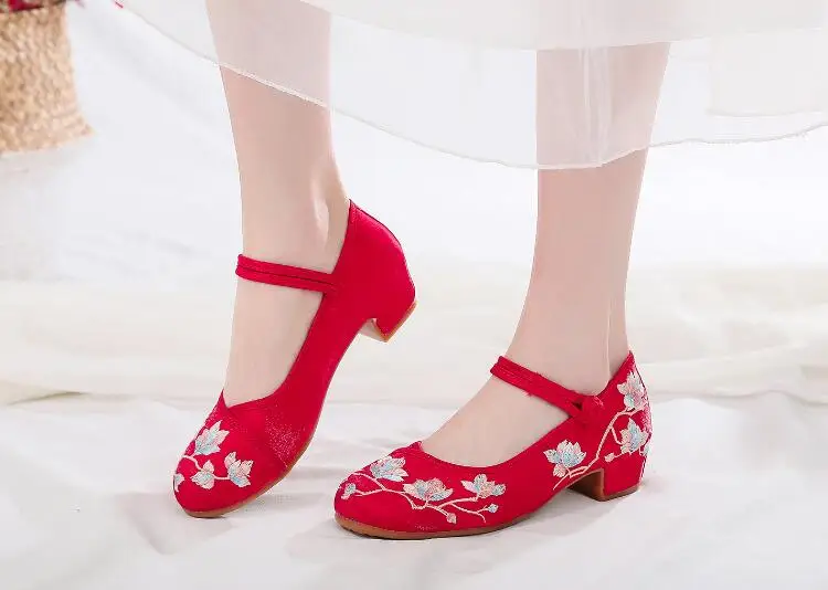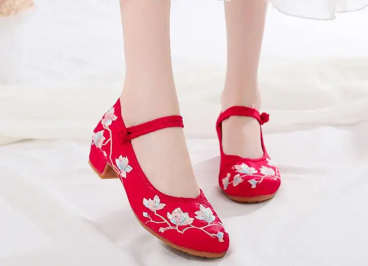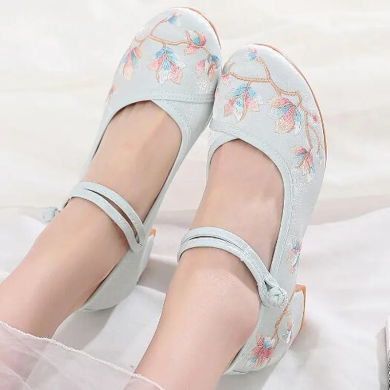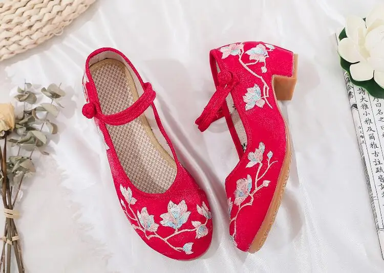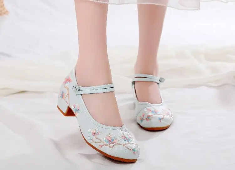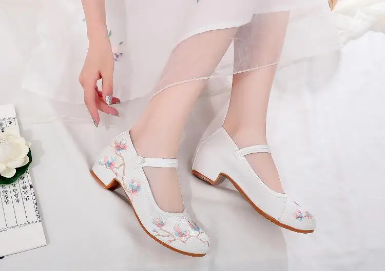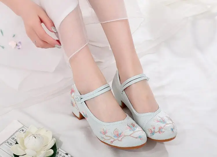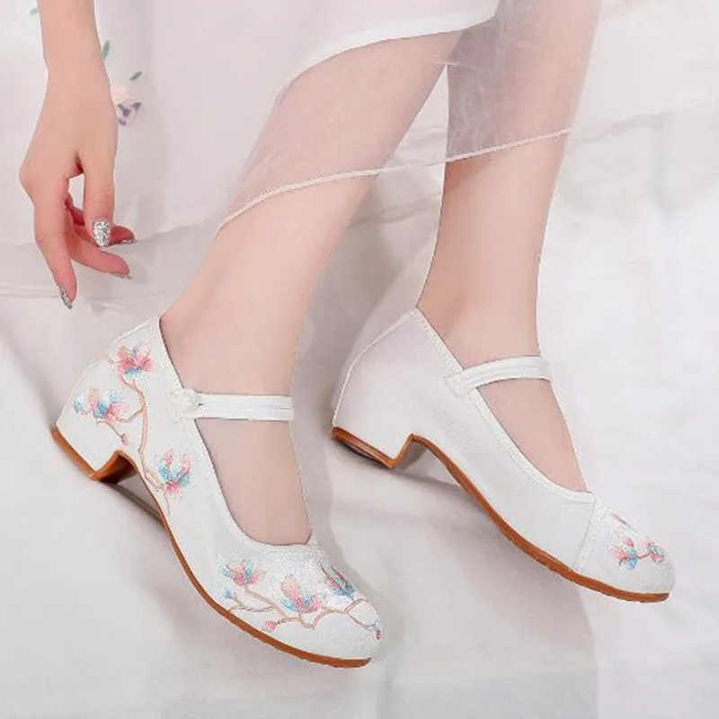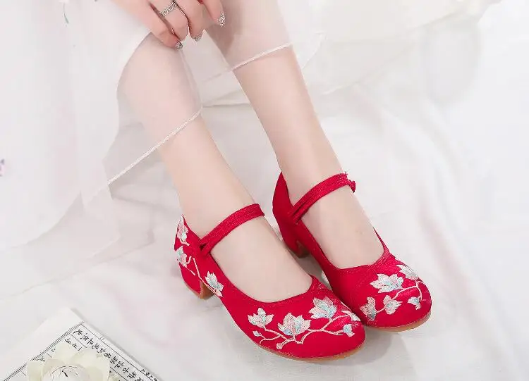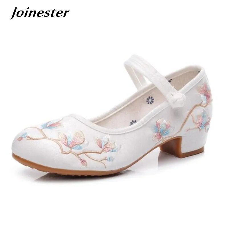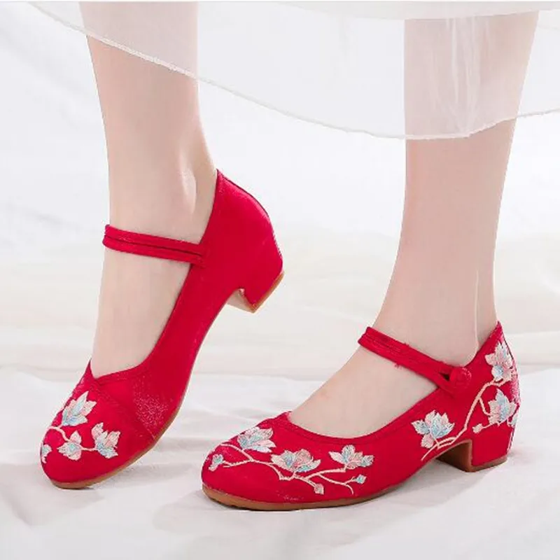 Туфли-лодочки женские в стиле ретро с вышивкой, цветочный принт, обувь для танцев, винтажная модельная обувь, летние Туфли Мэри Джейн с ремешком на пятке, женские туфли-лодочки