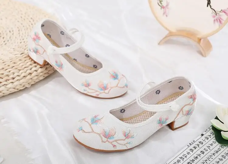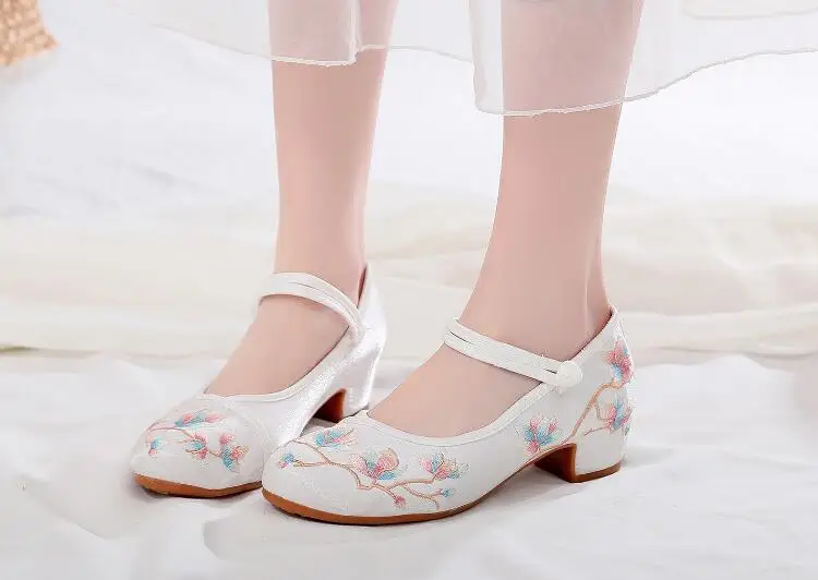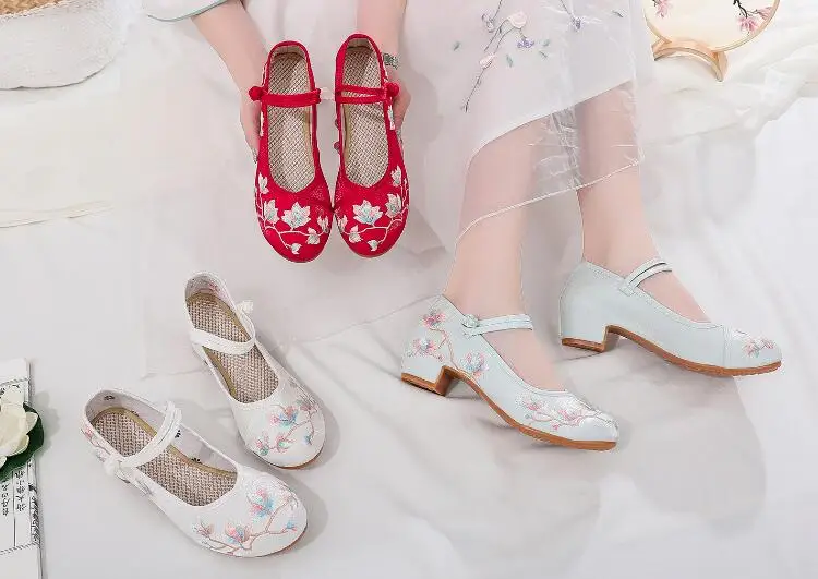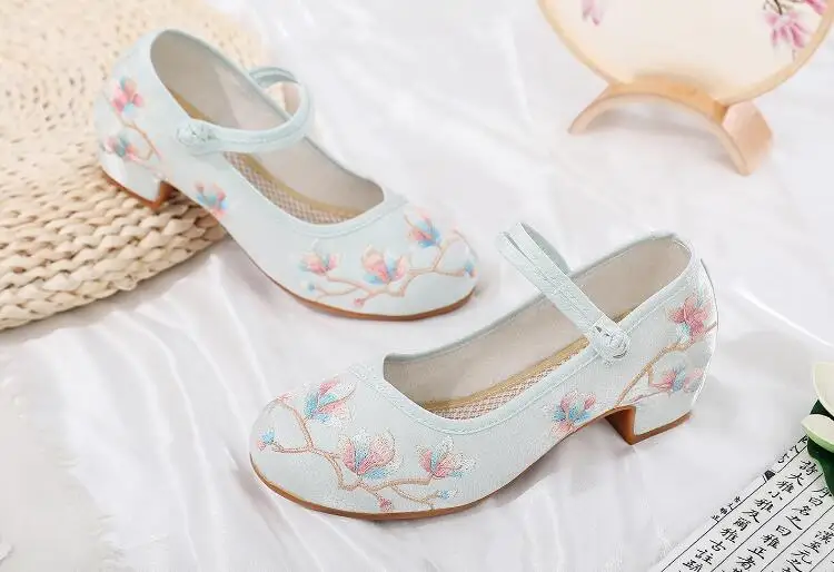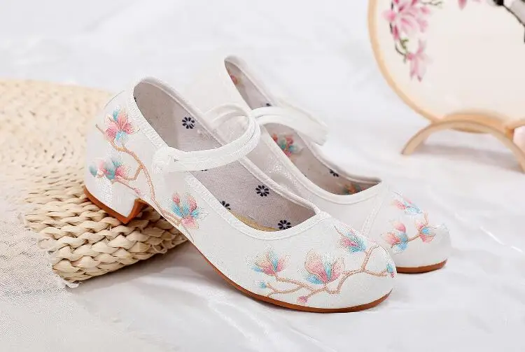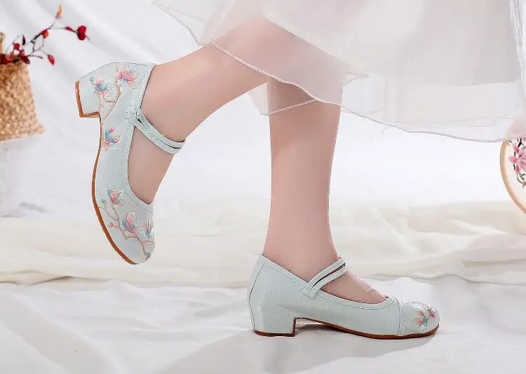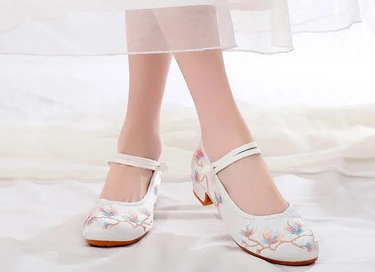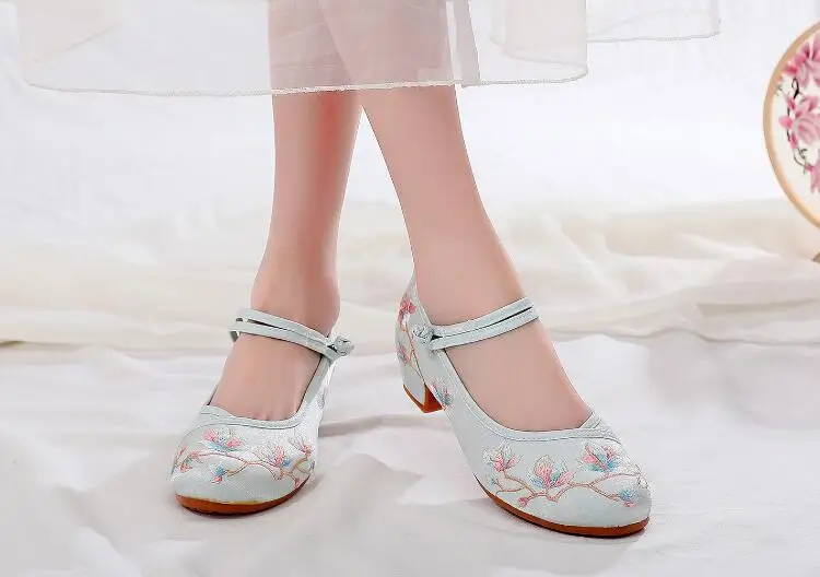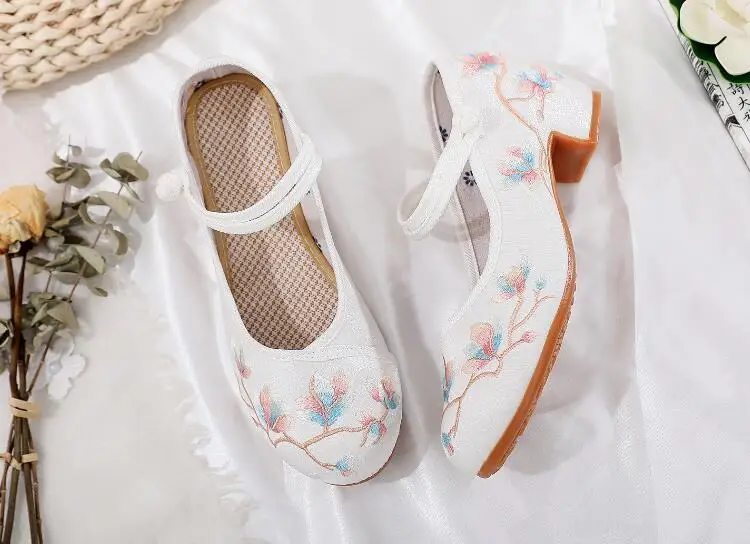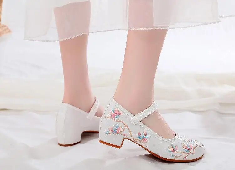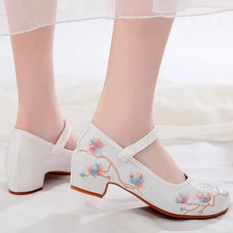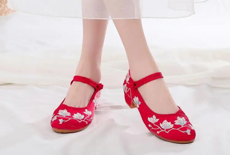 Туфли-лодочки женские в стиле ретро с вышивкой, цветочный принт, обувь для танцев, винтажная модельная обувь, летние Туфли Мэри Джейн с ремешком на пятке, женские туфли-лодочки