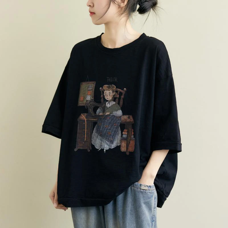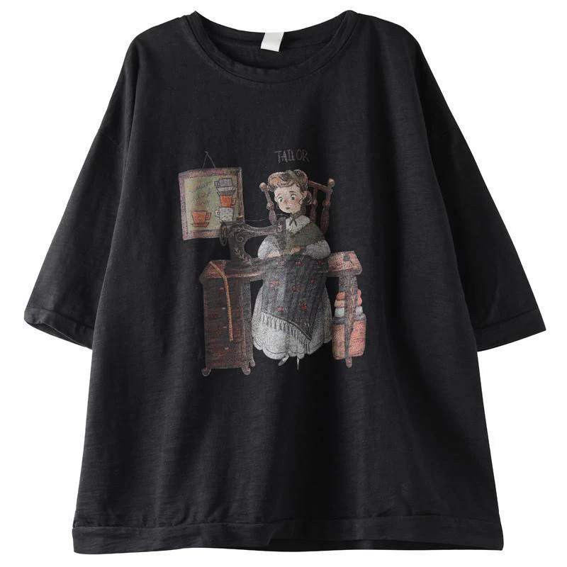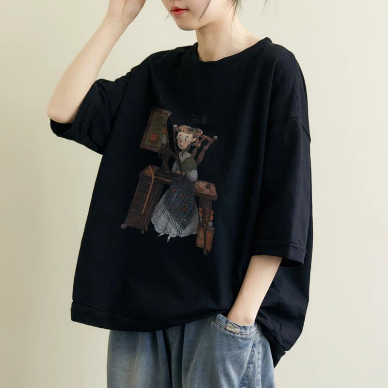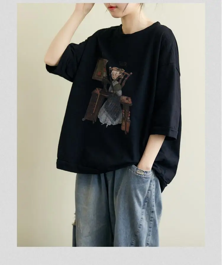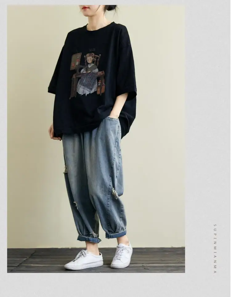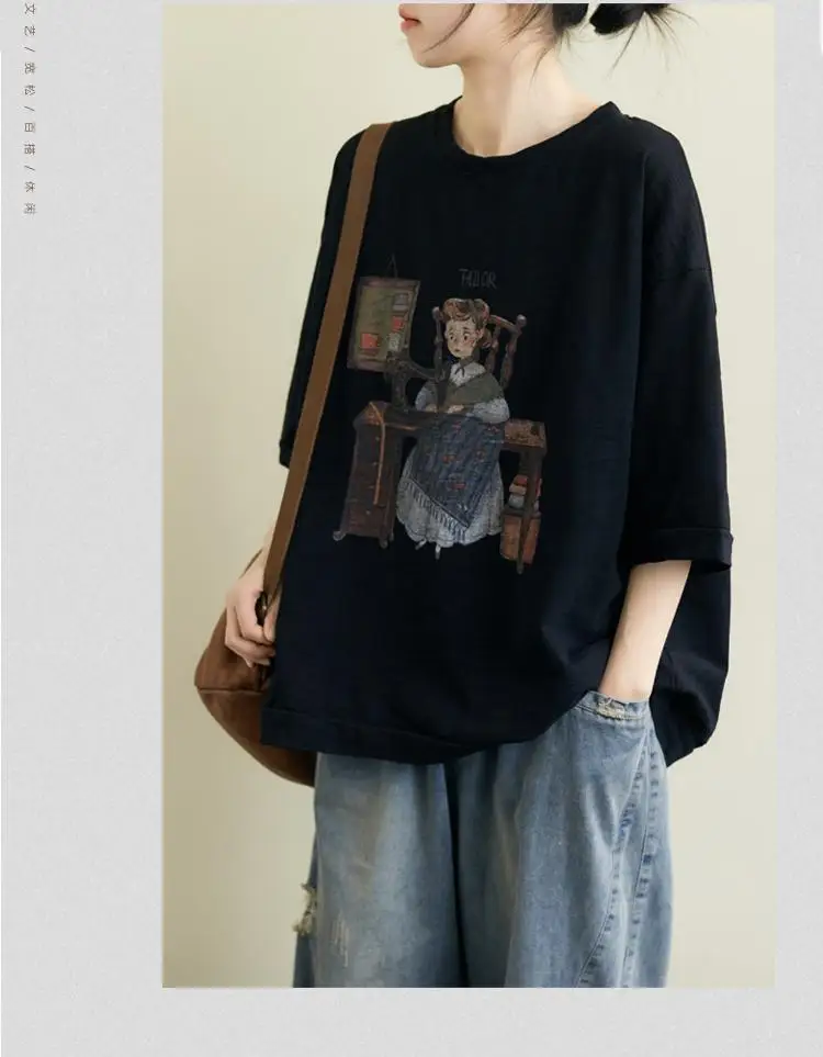 Футболка женская свободного покроя с коротким рукавом, универсальная Повседневная рубашка с винтажным принтом, хлопковый топ, большие размеры M18, на лето