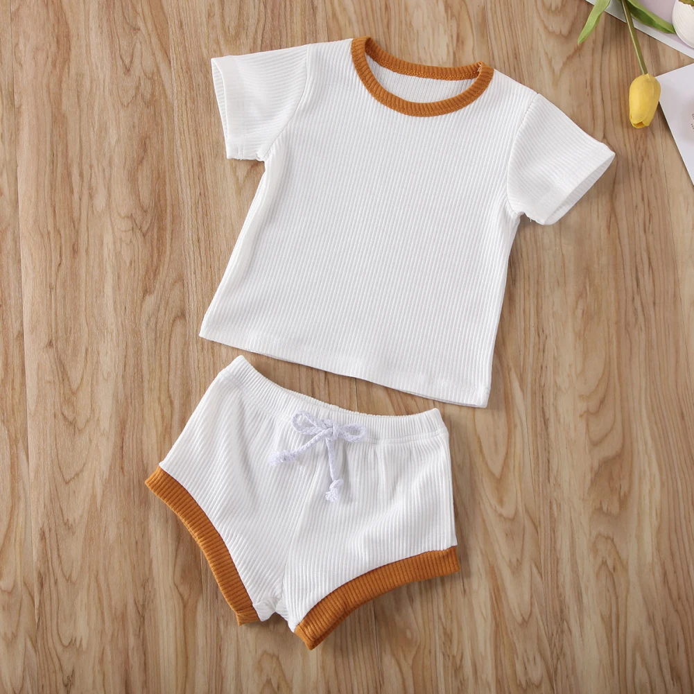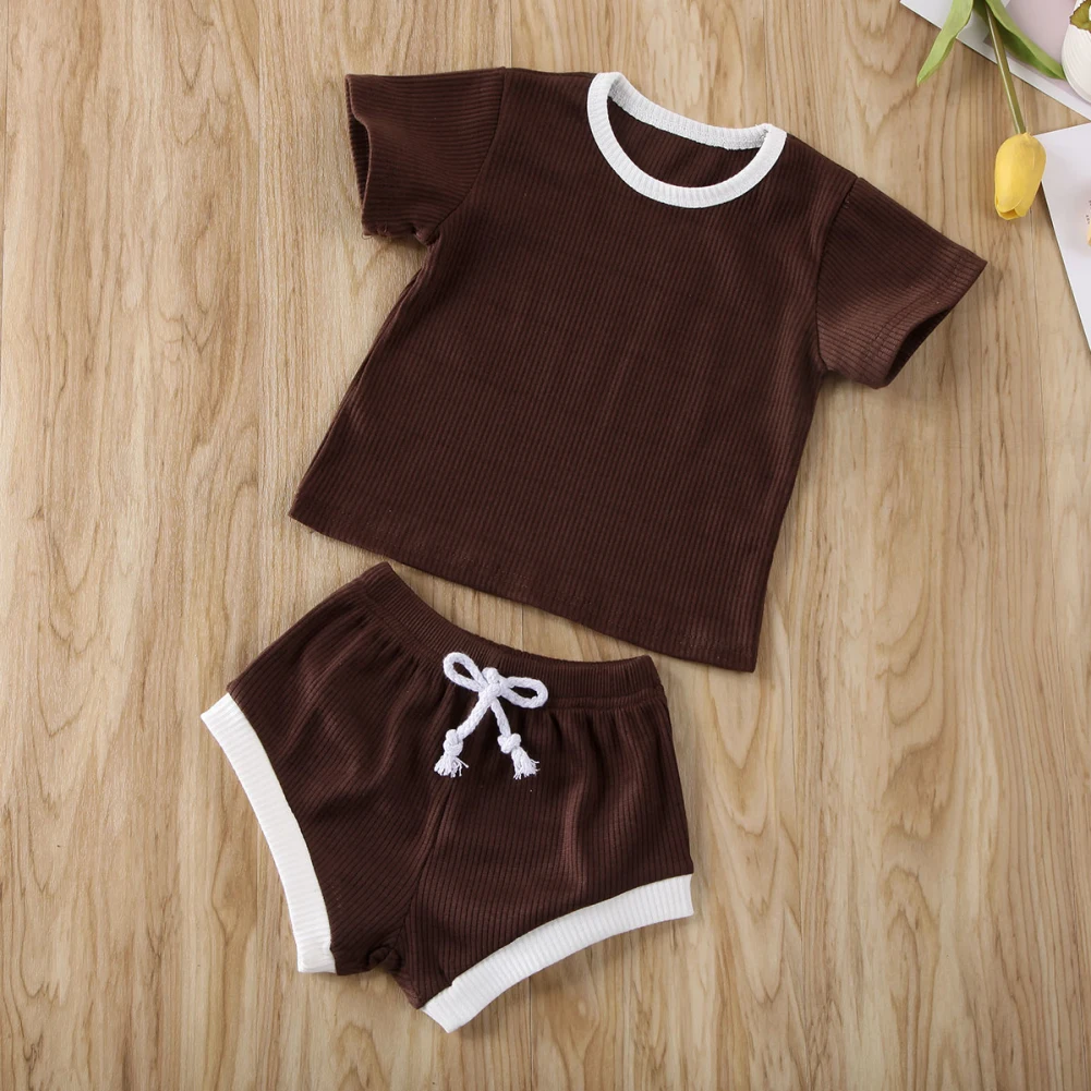 Модная Новая летняя одежда для маленьких мальчиков и девочек, одежда из хлопка для девочек, повседневная одежда, топы с короткими рукавами для новорожденных, футболка + шорты для детей ясельного возраста, одежда для маленьких детей комплект из 2 предметов