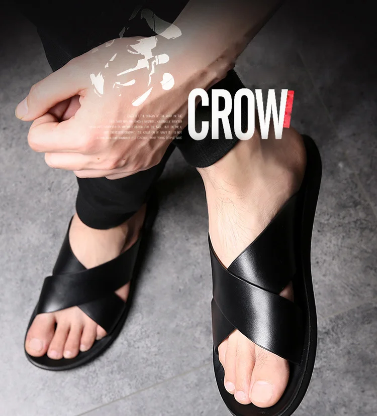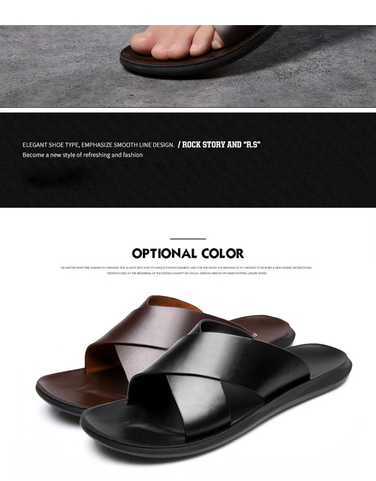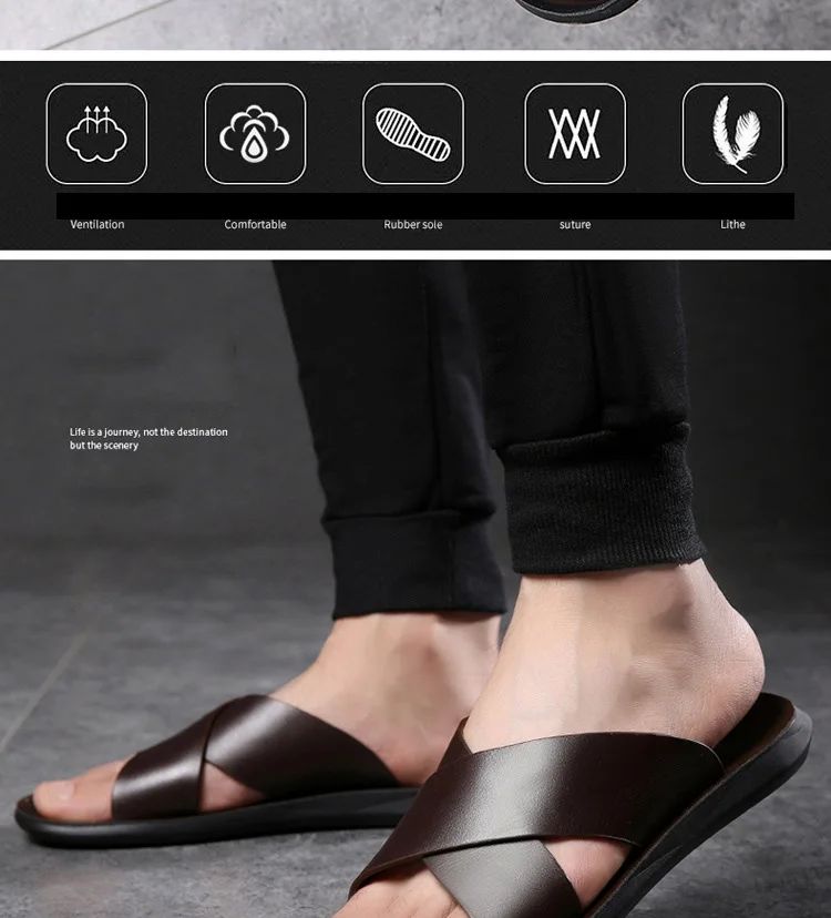 Шлепанцы мужские из натуральной кожи, на плоской подошве