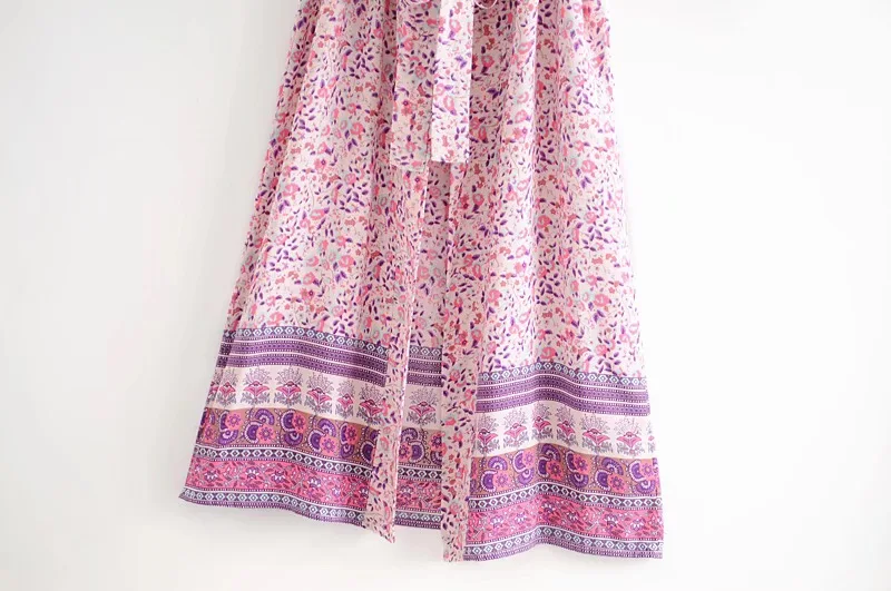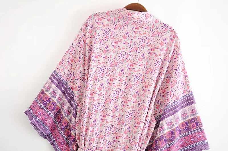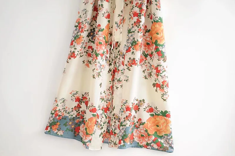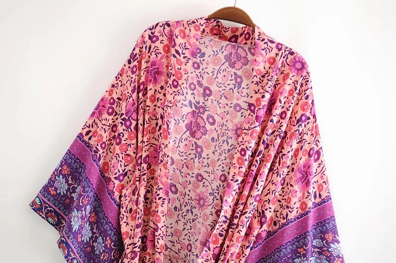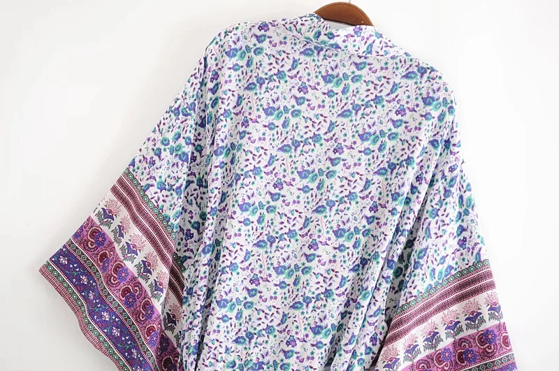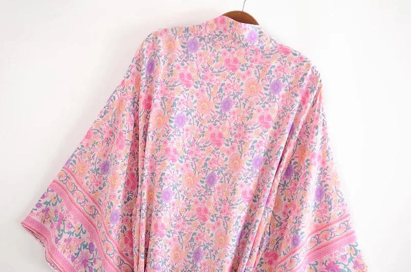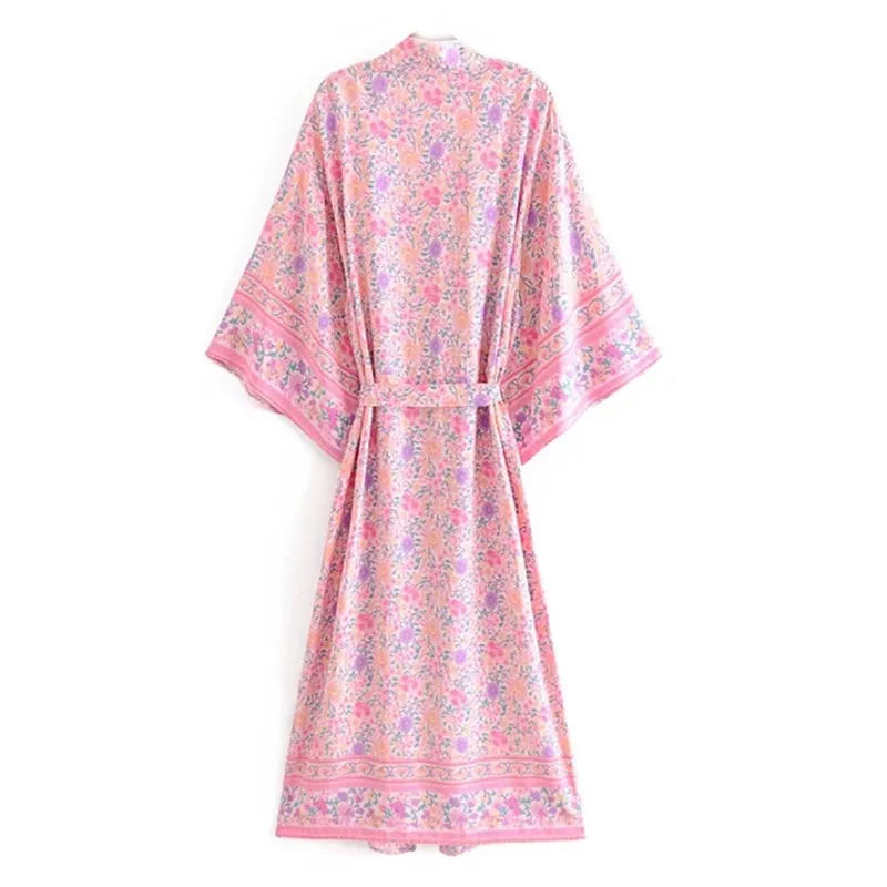 Рубашка-кимоно Женская в стиле бохо, длинный кардиган с цветочным принтом, в стиле хиппи, на завязках, с поясом-бантом, свободная Праздничная блузка, бежевый цвет