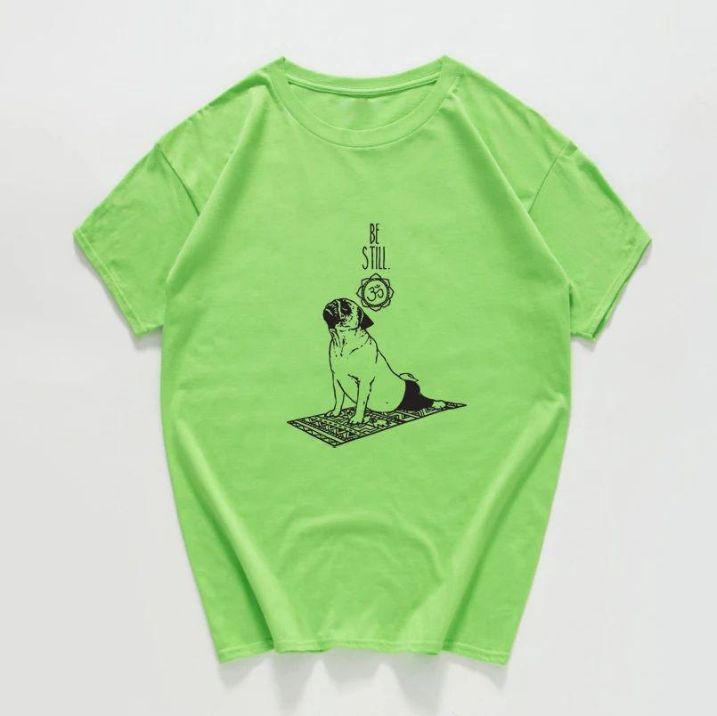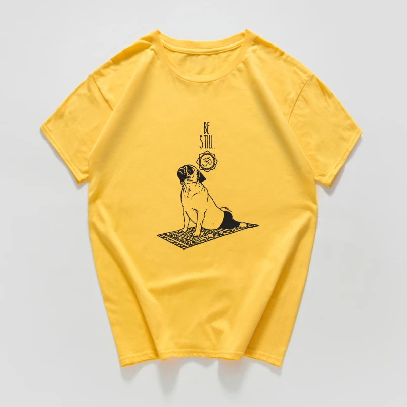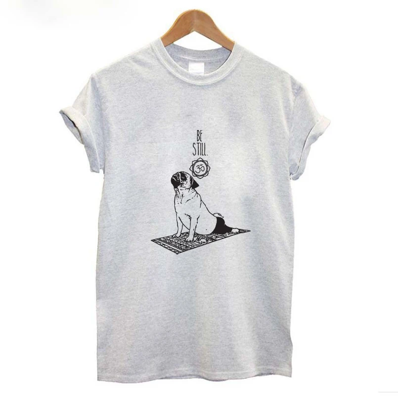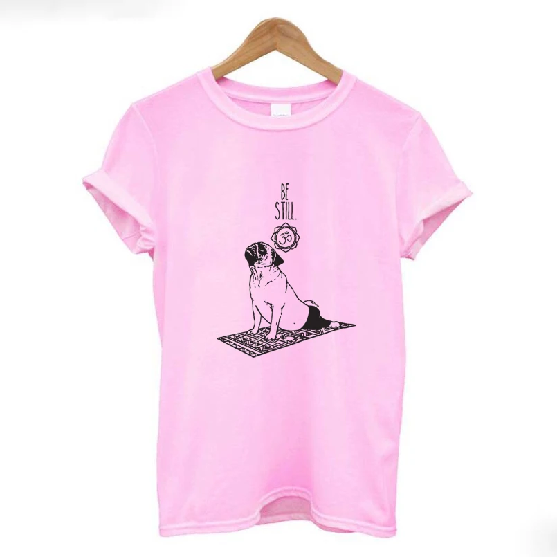 Забавная футболка для Мопсов, йоги, женская летняя хлопковая уличная одежда большого размера, свободные винтажные топы для тренировок, женская футболка