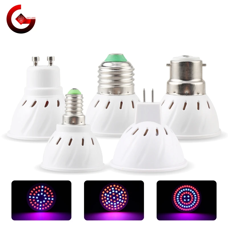 Светодиодная лампа для выращивания E27 E14 GU10 MR16 B22 220V гидропоники рост светильник 3 Вт, 4 Вт, 5 Вт с полным спектром для цветочных растений гидропоники лампа для выращивания