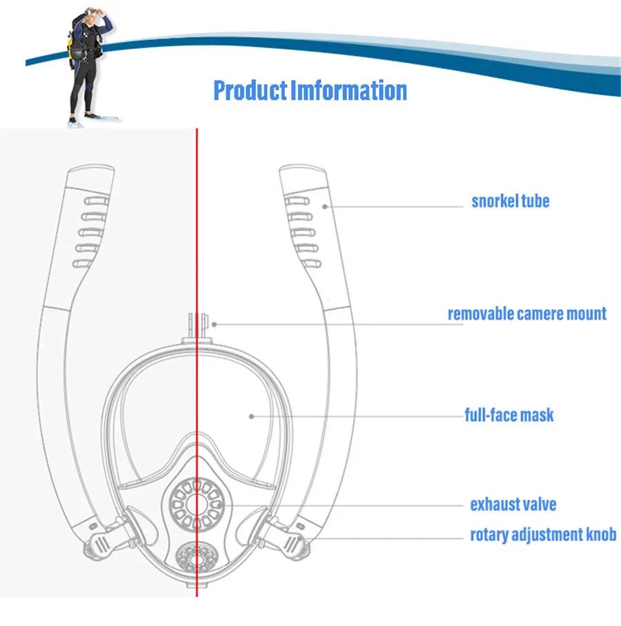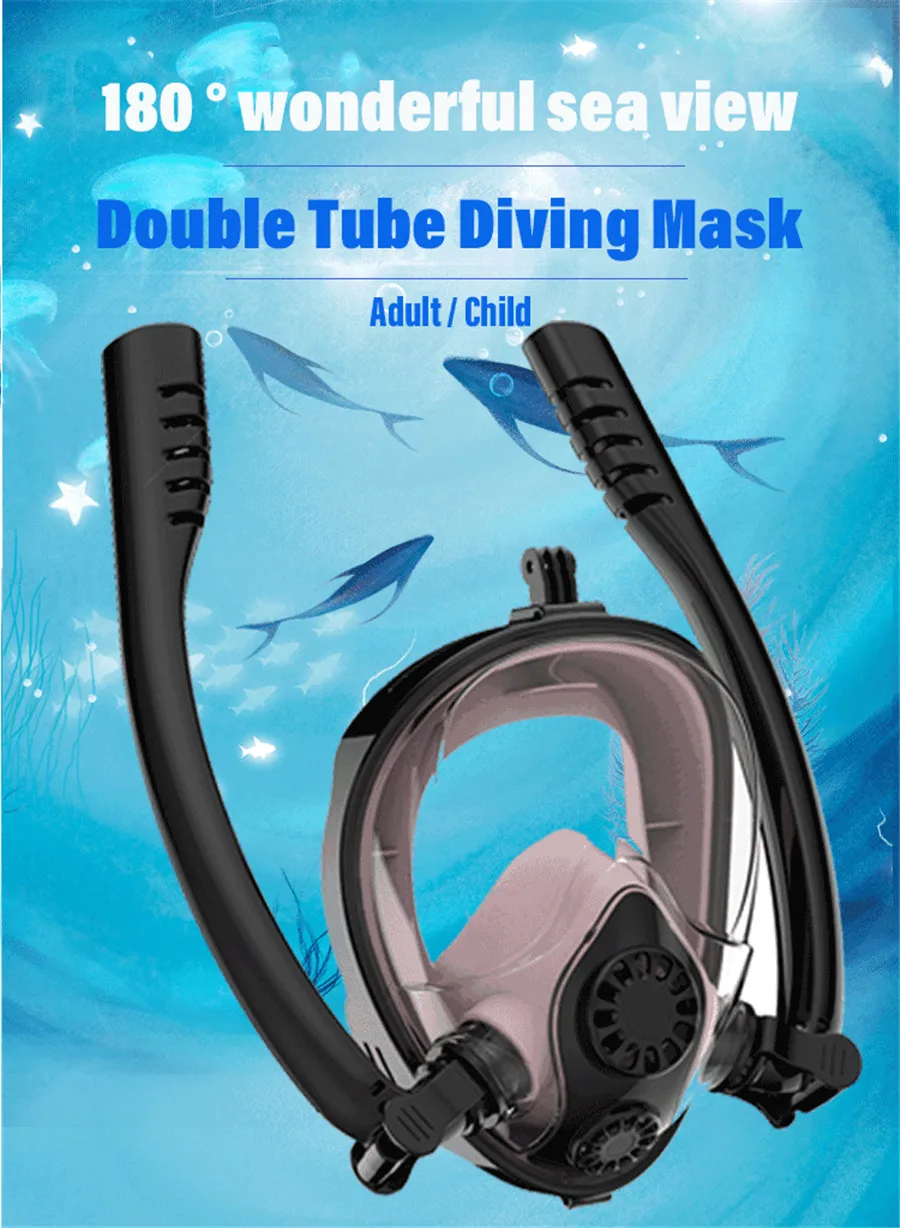 Маска для дайвинга, незапотевающая Полнолицевая маска для подводного плавания с аквалангом, дыхательное снаряжение для плавания с двойной трубкой для взрослых и детей