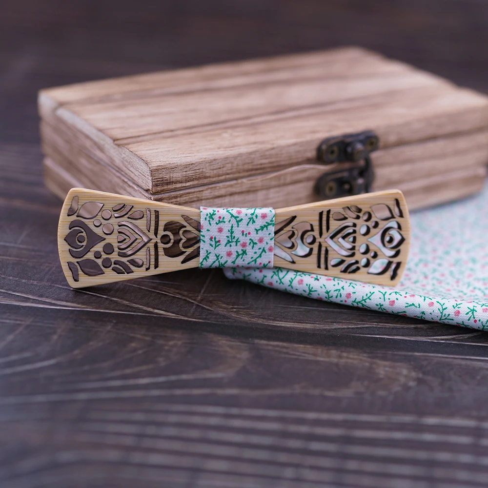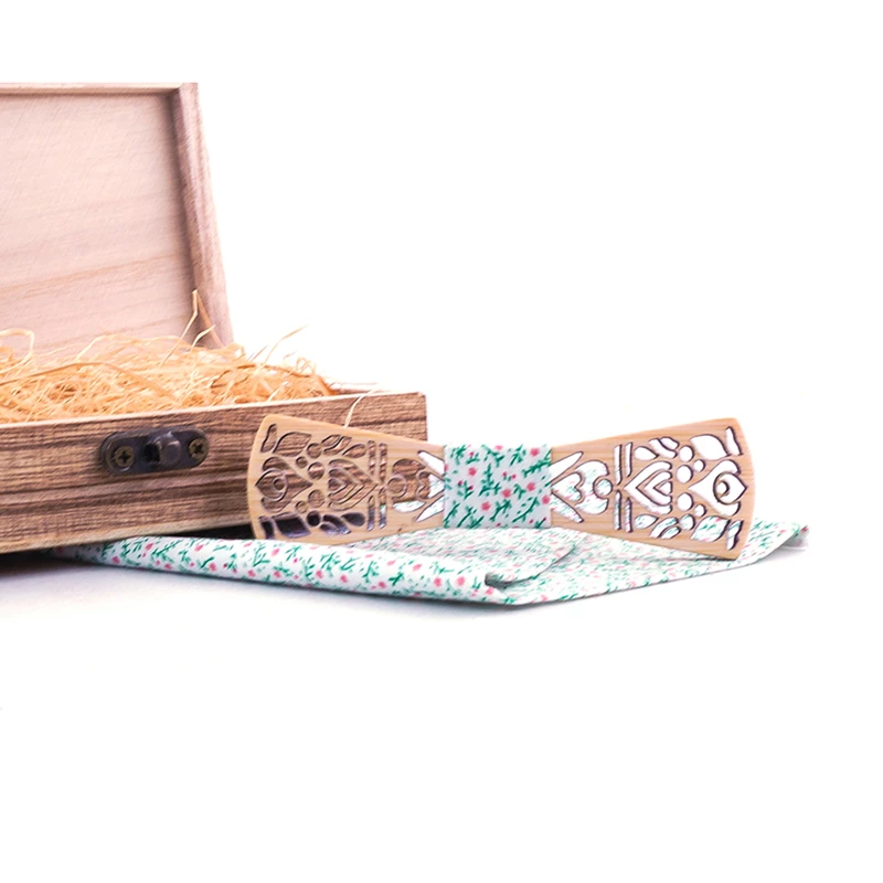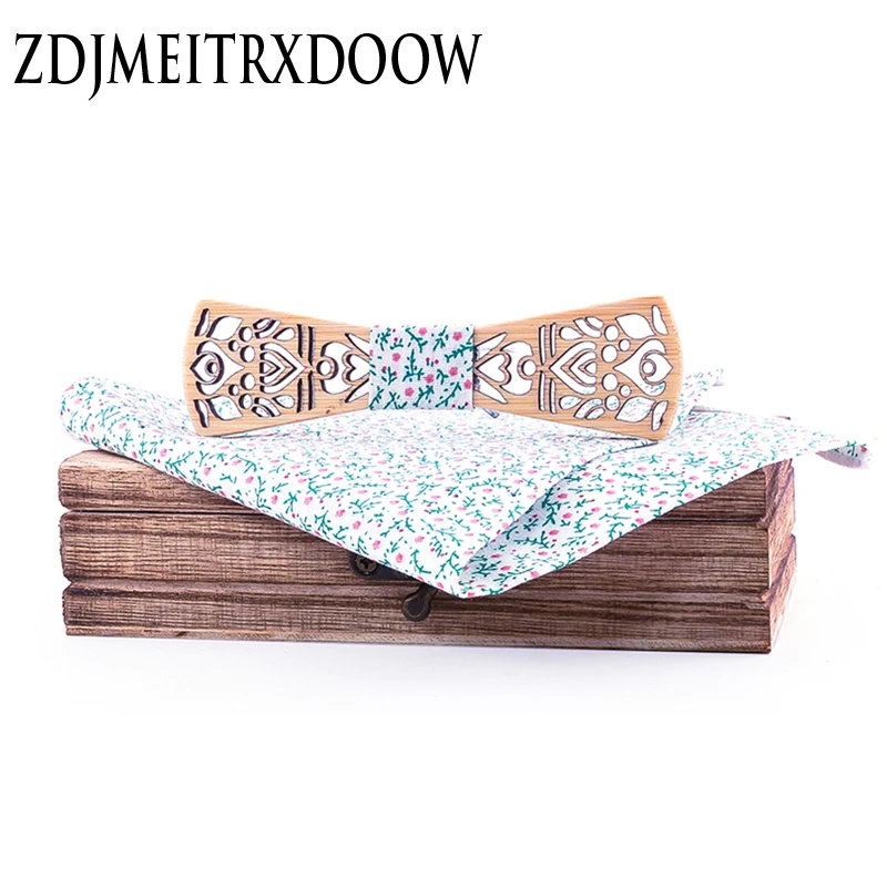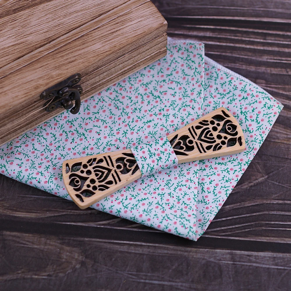 Деревянный галстук-бабочка, носовой платок, цветочный набор, Мужской деревянный вырезанный вырез, дизайн с подарочной коробкой, Модный Новый галстук