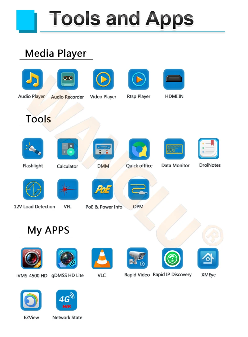 IPC9800MOVTADHS Plus: для IP + аналоговый + AHD + HD-TVI + CVI + SDI Тест камеры + цифровой мультиметр + оптический измеритель мощности + Визуальный дефектоскоп + TDR тест кабеля + Видео Уровень