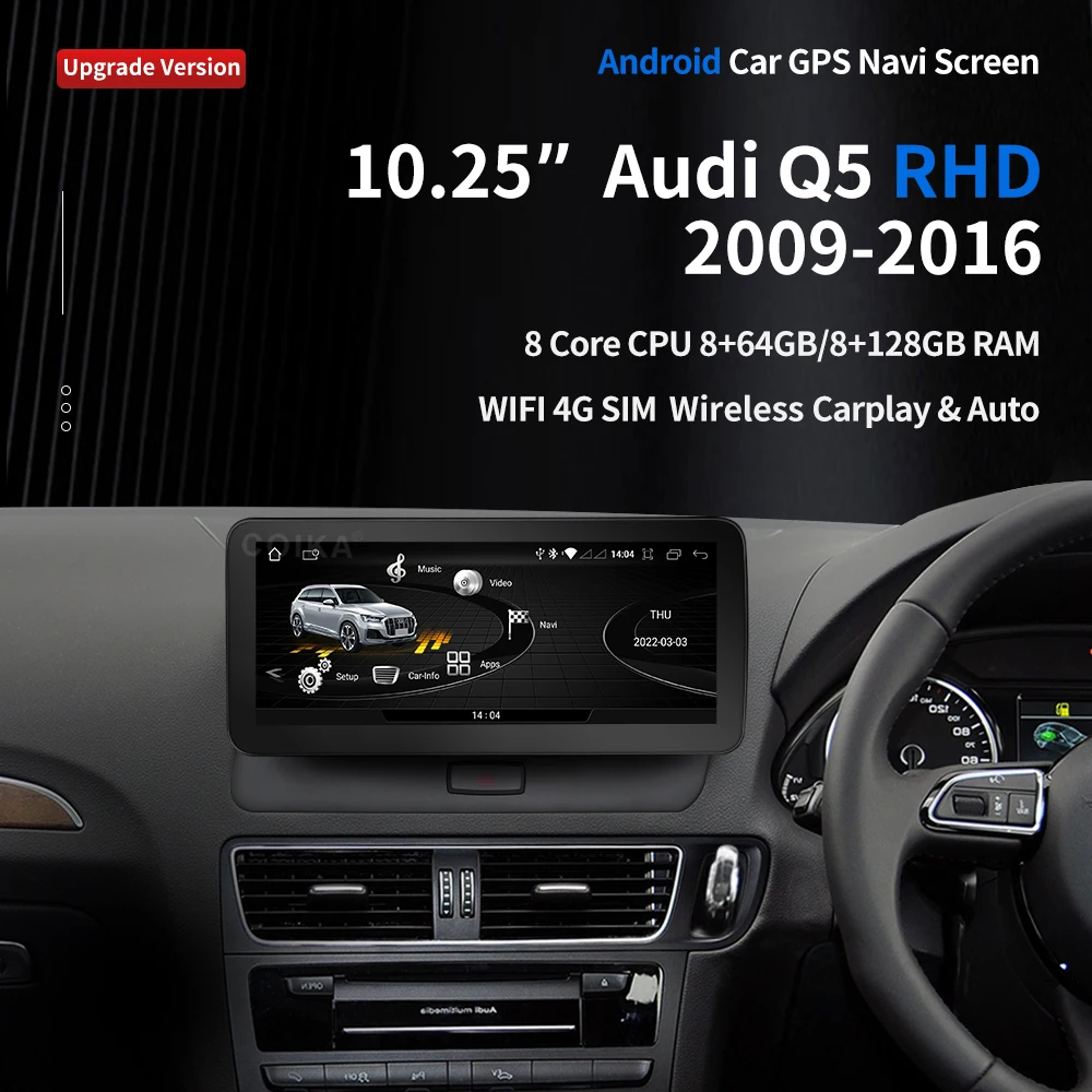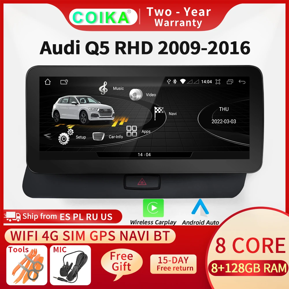 Автомобильный сенсорный экран 10,25 дюйма, 8 ядер, Wi-Fi, 4G, SIM, IPS, стерео, для Audi Q5 2009-2016, RHD, BT, Google, GPS, навигация, радио, Carplay, авто, Android 10