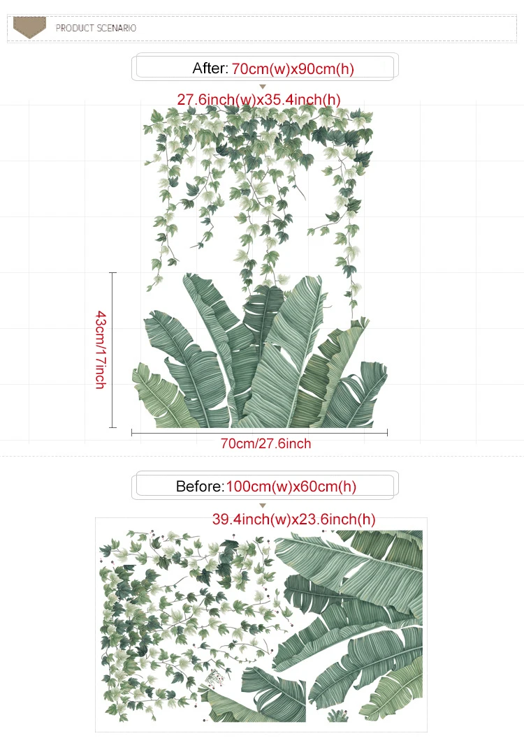 Тропическое растение банановый лист DIY Настенная Наклейка для гост...