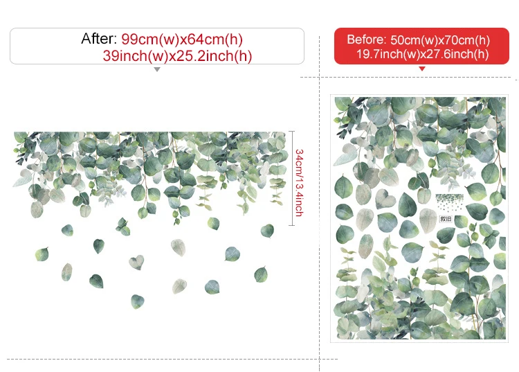 17 стилей зеленые листья настенные наклейки для спальни, гостиной, ...