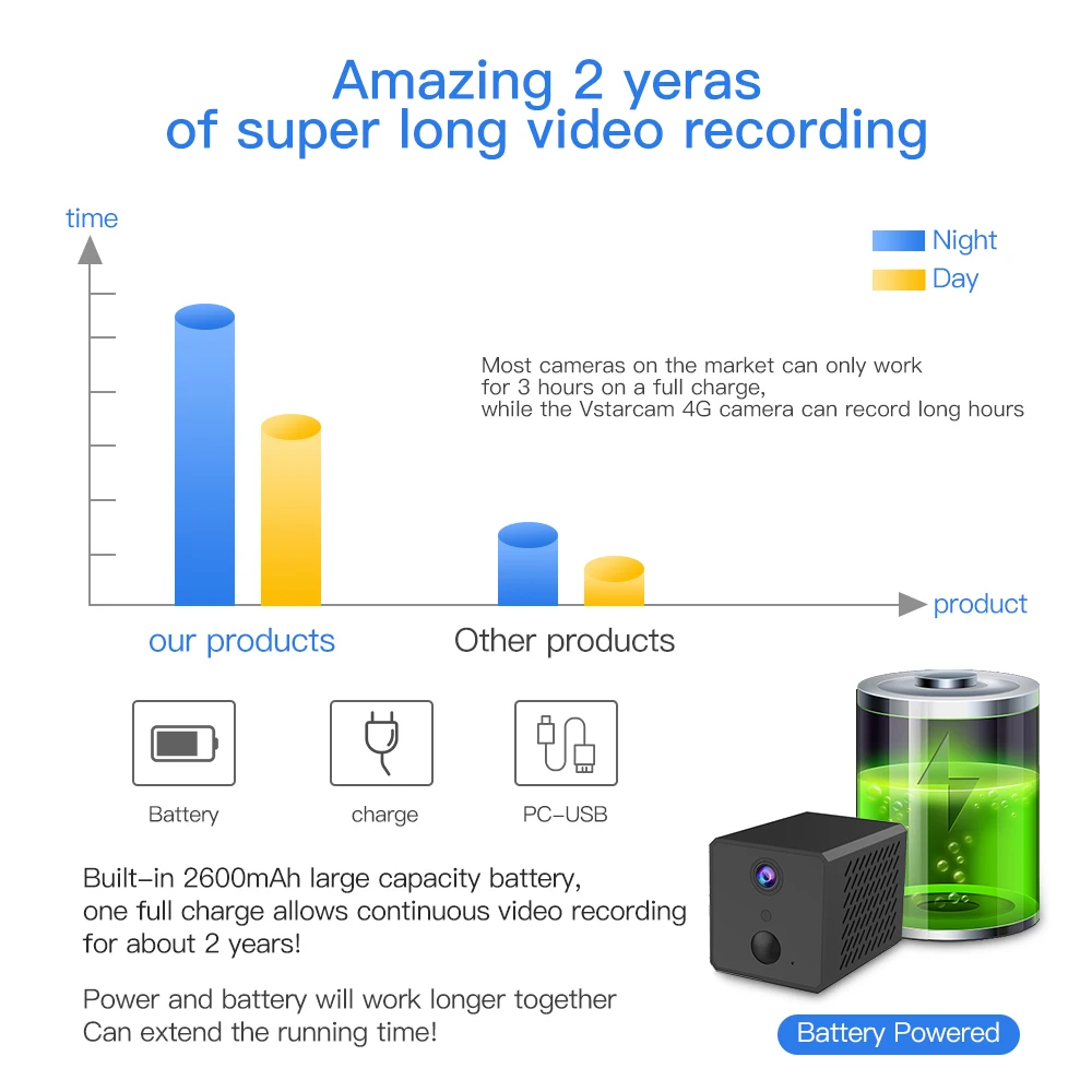 Мини-камера видеонаблюдения Vstarcam, 1080P, 4G, 2600 мАч