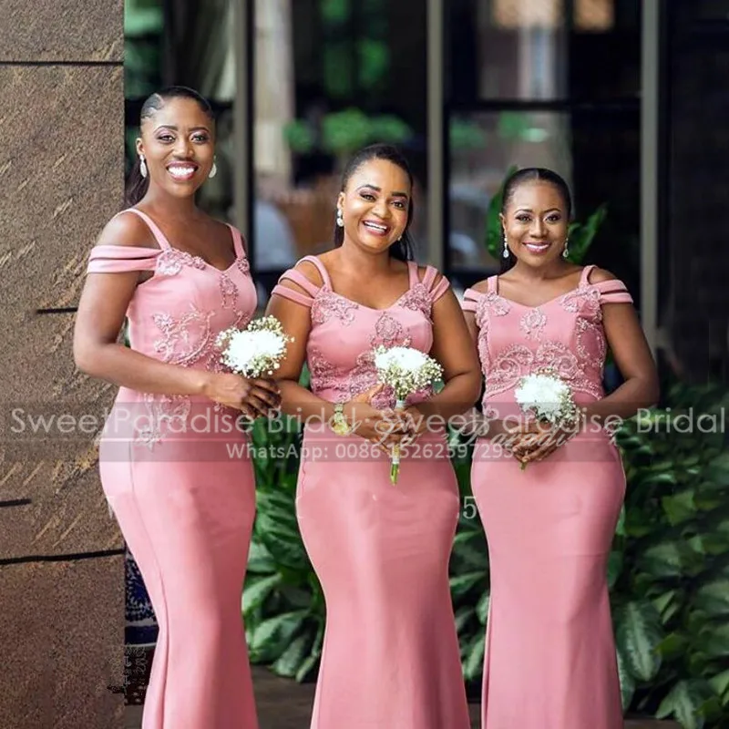 Изысканное платье подружки невесты с аппликацией и бусинами розовое Африканское женское длинное свадебное платье для выпускного вечера, свадебное платье со шнуровкой сзади, длина до пола на заказ
