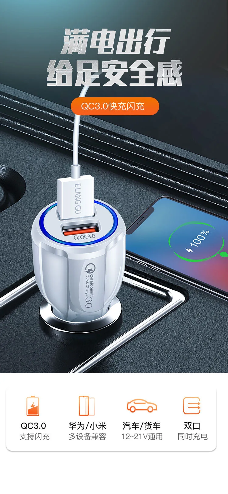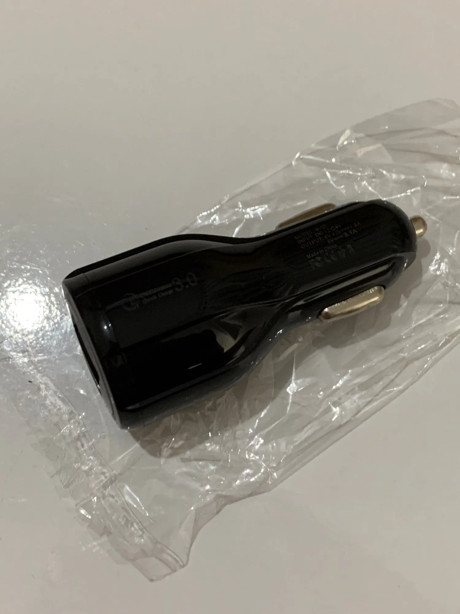 Сказал, что это QC, но нет. Только обычное автомобильное зарядное устройство с 2 USB
