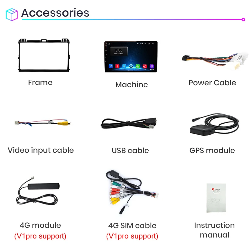1. Штифт-штифт: Кабель питания Junsun radio' является штифтом для штифта, прост в установке;2. Встроенный Carplay/ Android Auto: Поддержка версии V1Pro, просто используйте кабель телефона, подключите его, стабильный и простой в использовании; (V1 поддерживает только Android Auto, но нужно покупать; V1C не поддерживает)3. Поддержка подголовника: только поддержка версии Junsun V1;