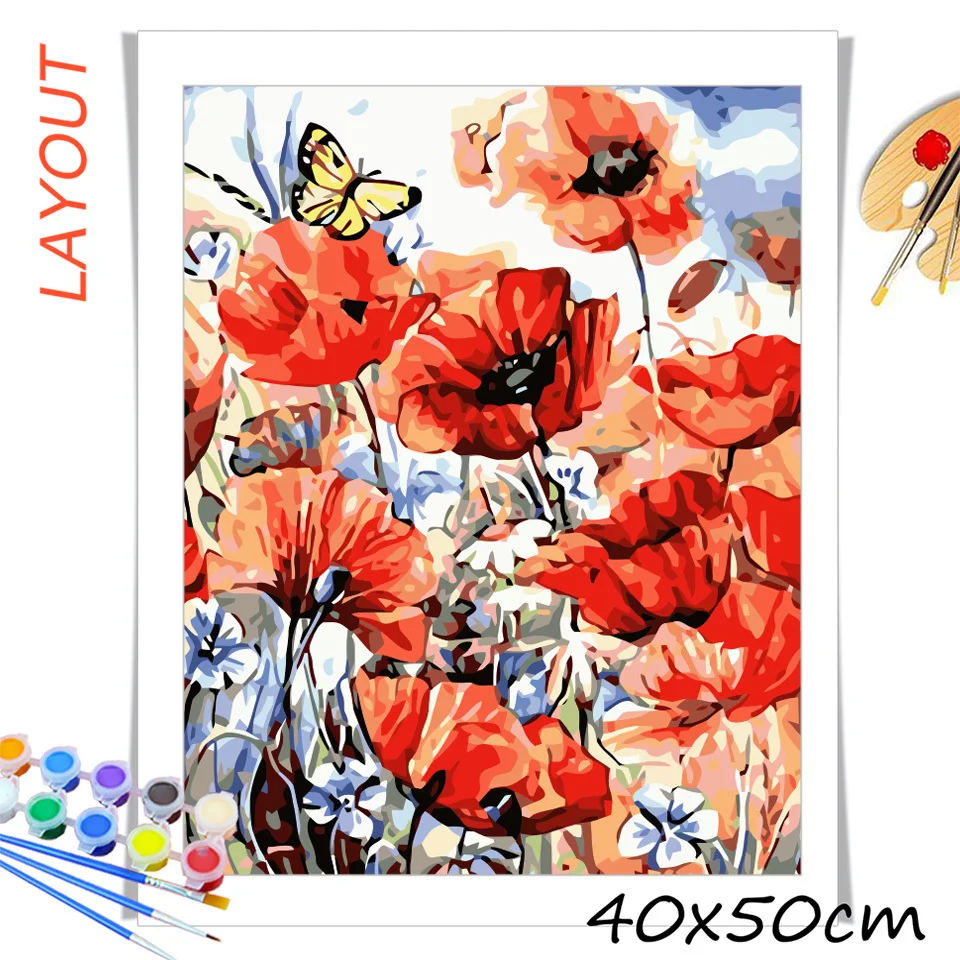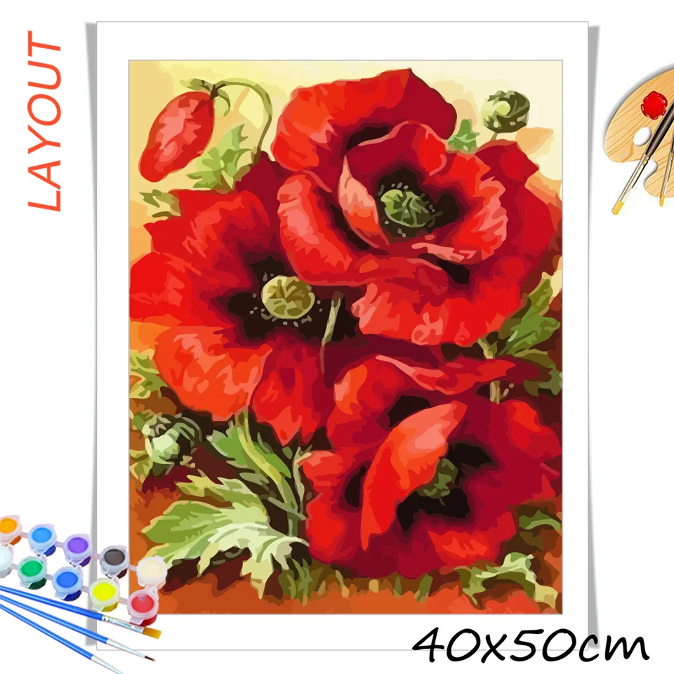 AZQSD цвет по номерам Цветок Ручная роспись маслом по номерам красн...