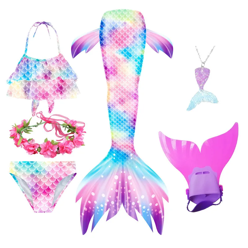 Костюм для девочек с хвостом русалки; Маскарадный костюм принцессы Ариэль; Детский купальный костюм с хвостом русалки; Нарядное платье; Купальный комплект бикини; Купальный костюм; Новинка