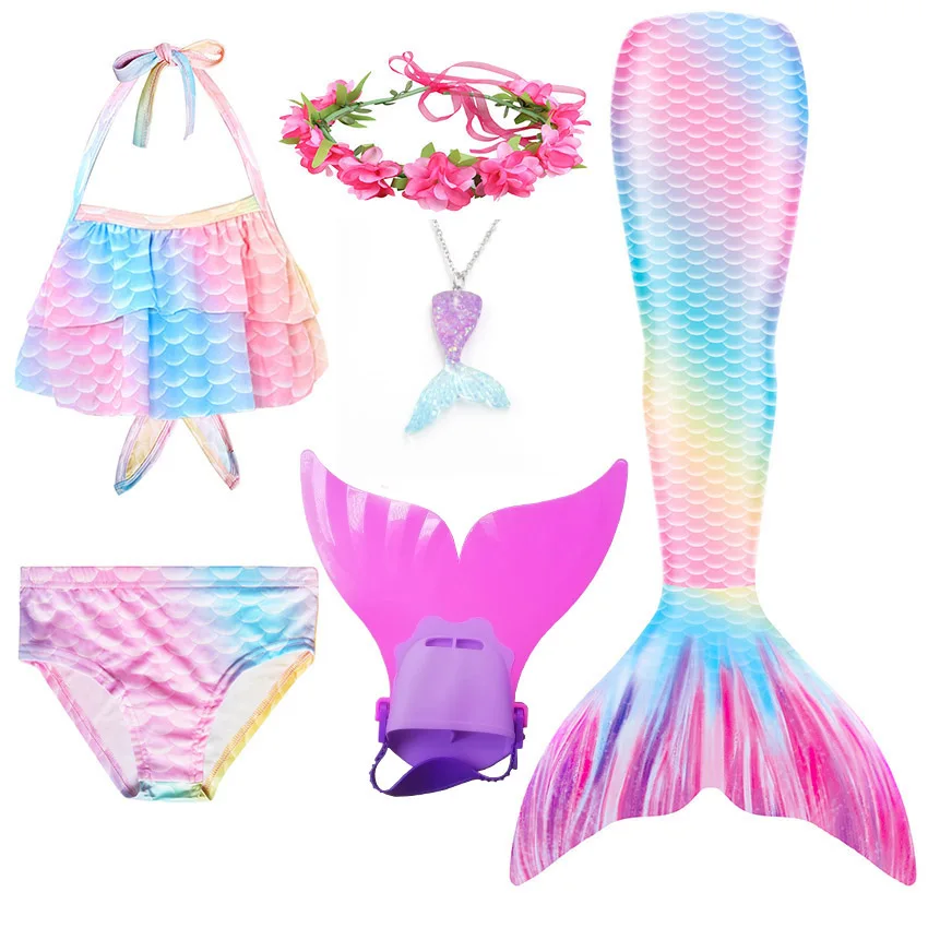 Купальный костюм для девочек с хвостом Русалочки, комплект для плав...