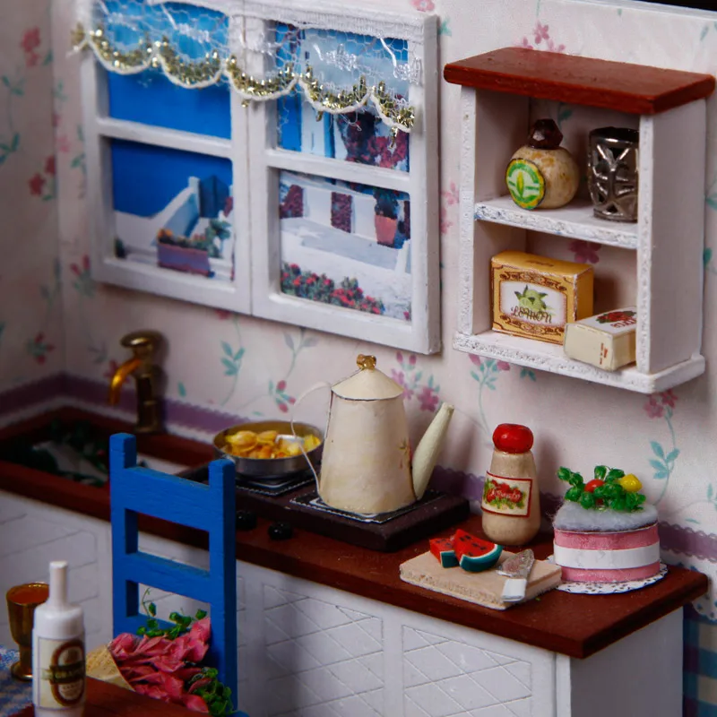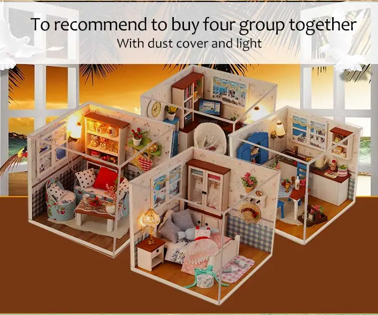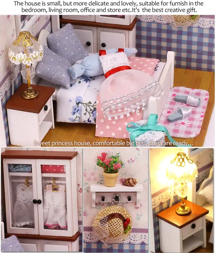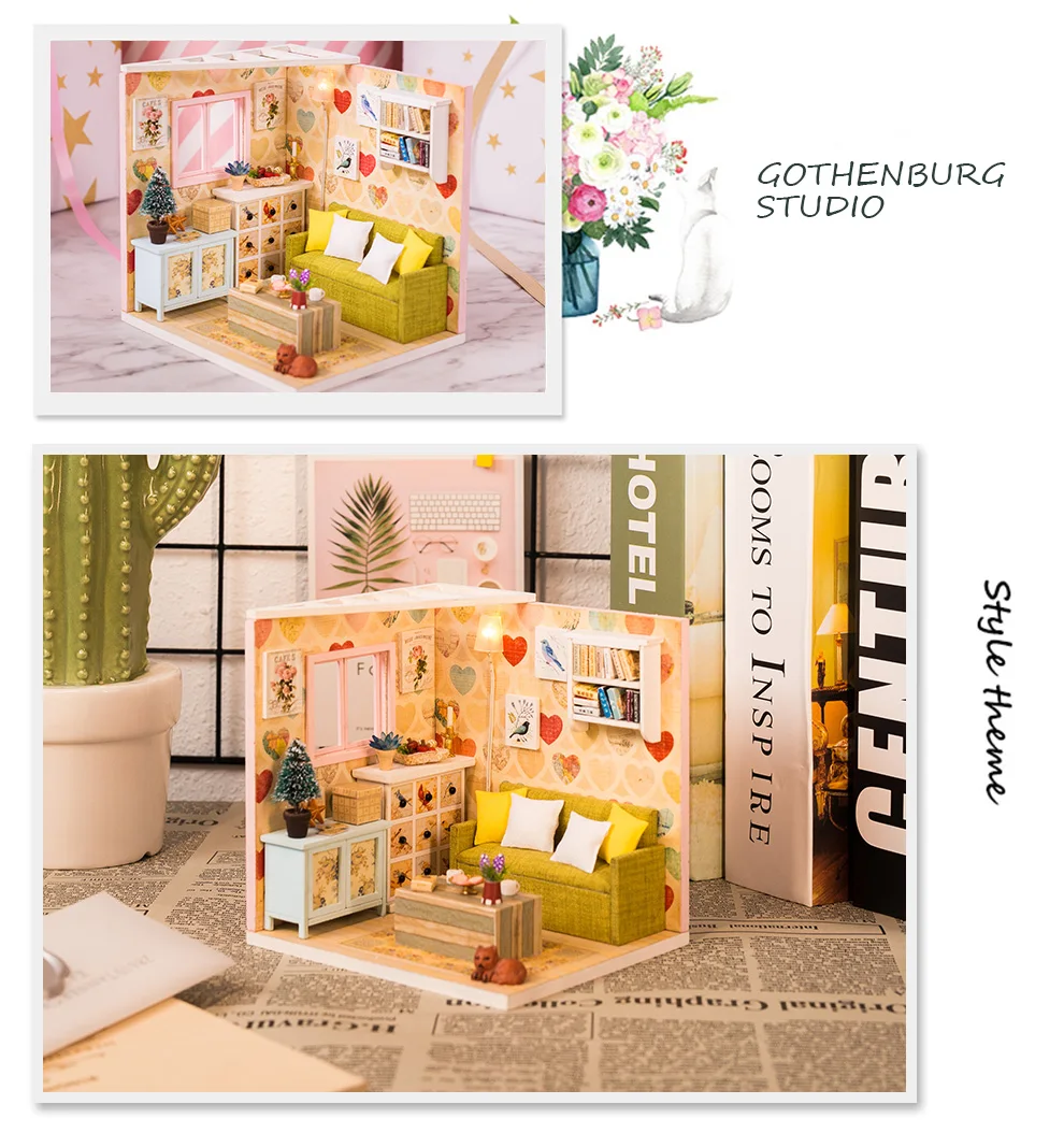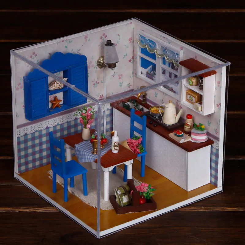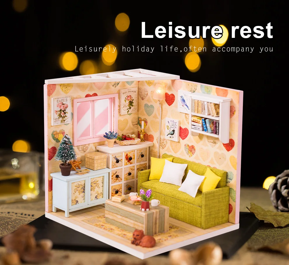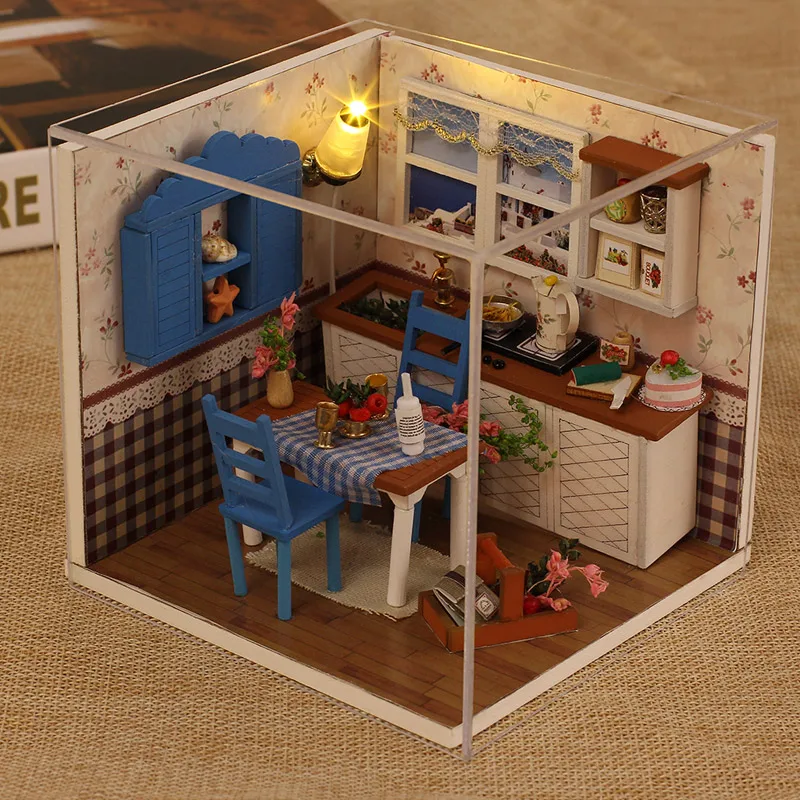 Деревянная 3d-мебель, кукольный домик сделай сам, набор для миниатюры, комнатный бокс, LED светильник, креативные подарки ручной работы