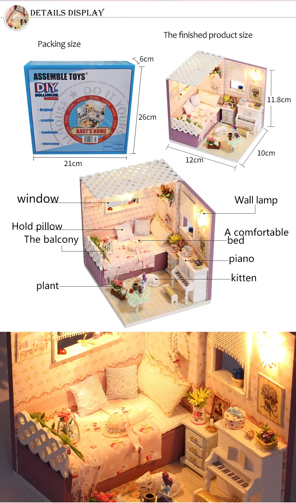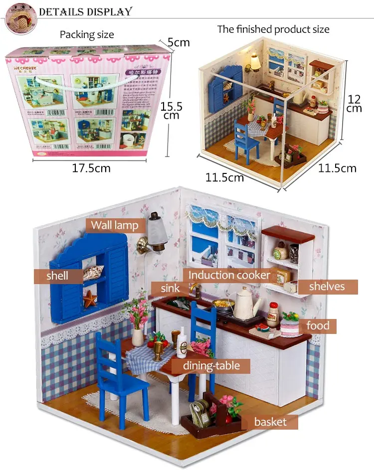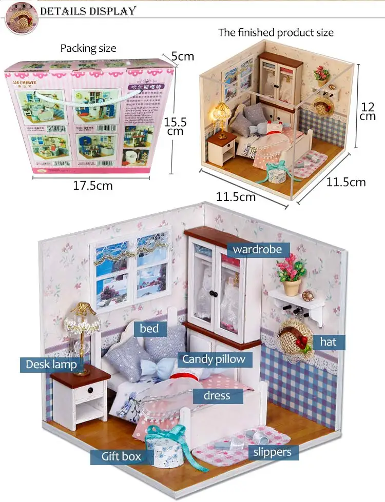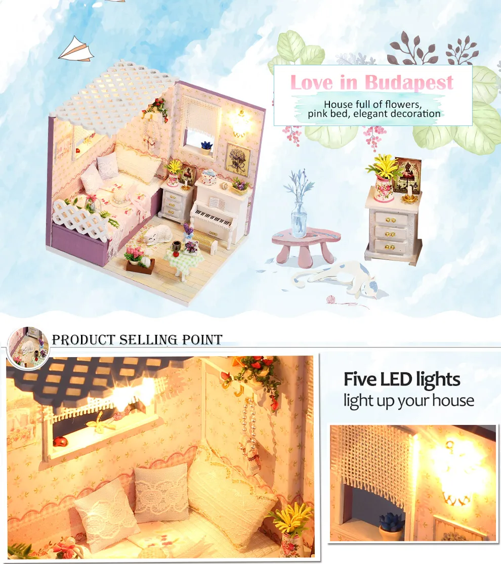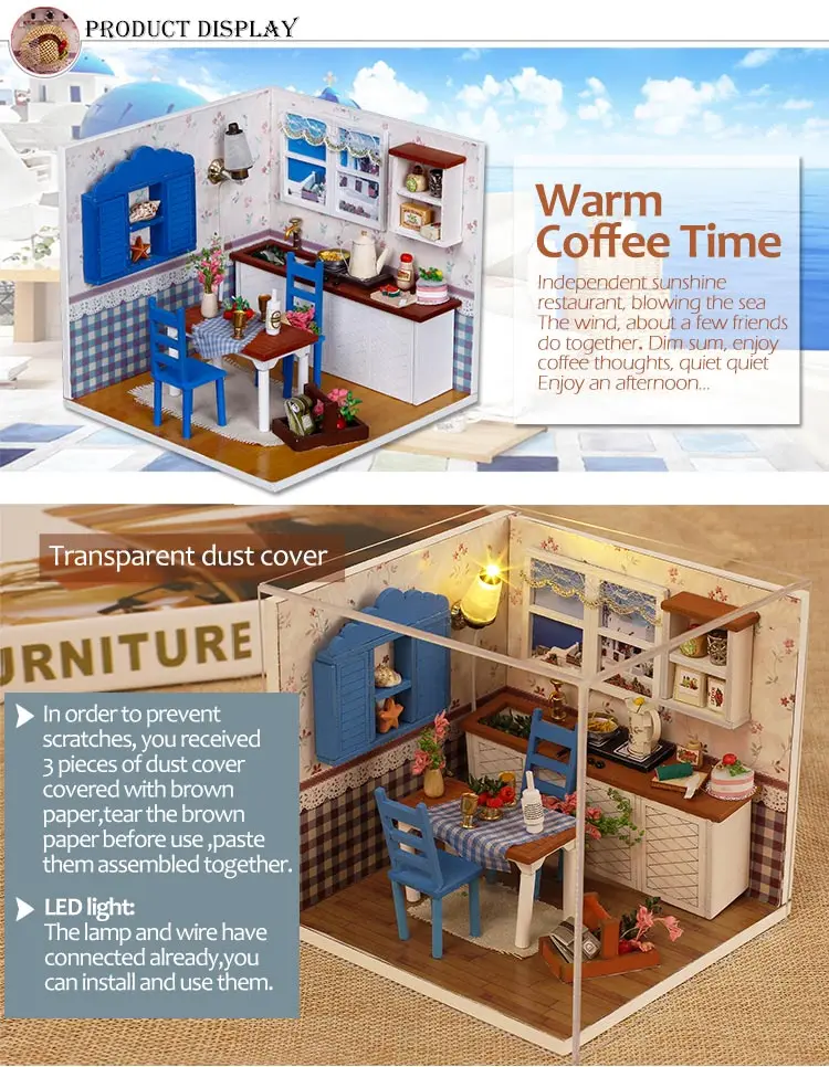 Деревянная 3d-мебель, кукольный домик сделай сам, набор для миниатюры, комнатный бокс, LED светильник, креативные подарки ручной работы