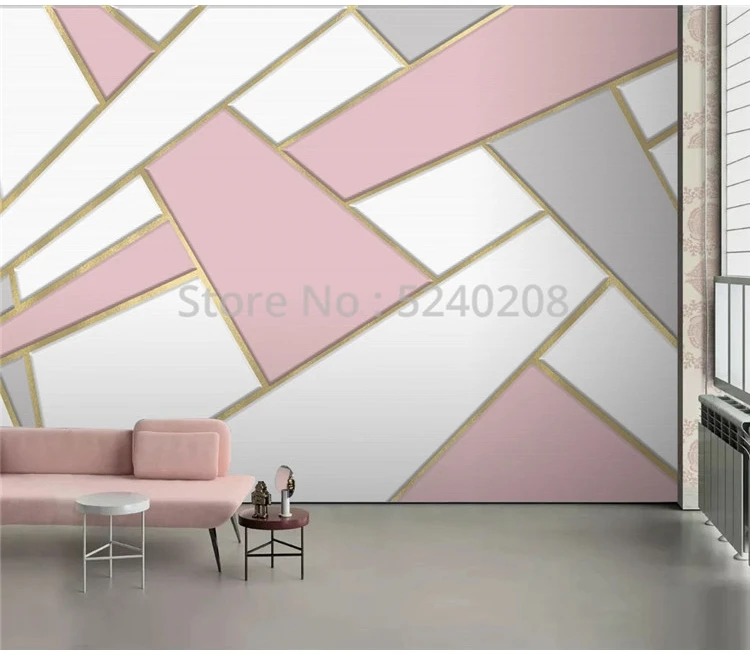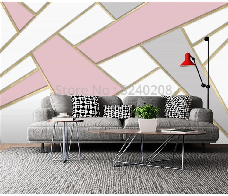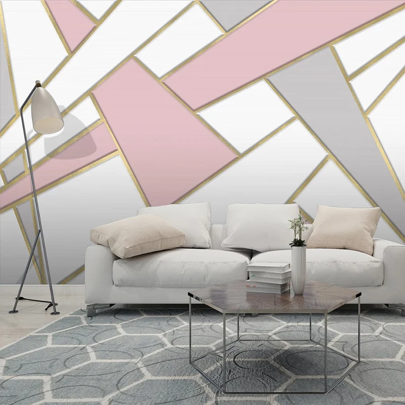 Настенная бумага на заказ, современная абстрактная настенная бумага с золотыми линиями розового цвета, водонепроницаемая 3D Фреска для гостиной, спальни, любого размера