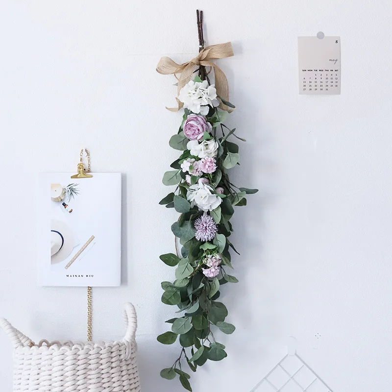 Искусственные зеленые эвкалиптовые листья, Виноградная лоза, шелковые листья, искусственные растения из ротанга, искусственные растения, плющ, венок, настенный, Свадебный декор