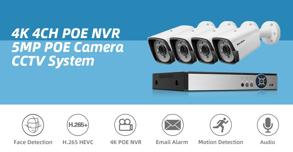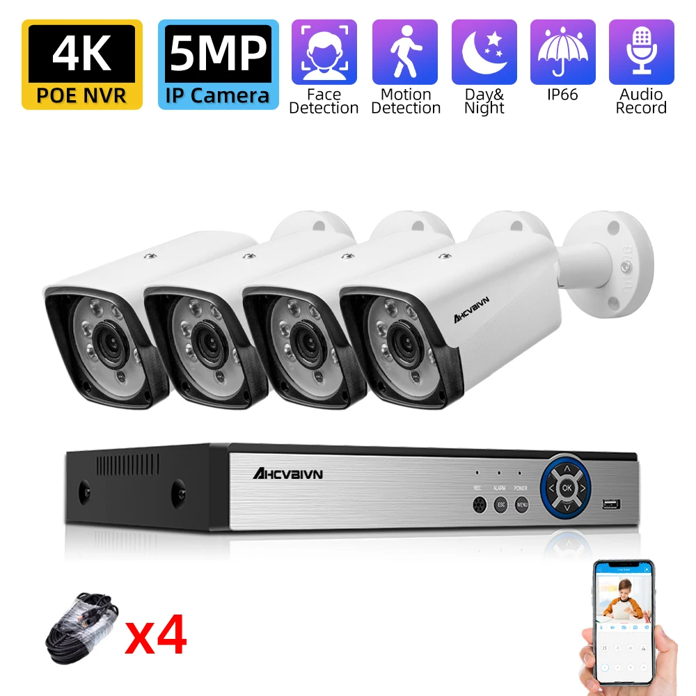 AHCVBIVN H.265 4CH 5MP POE Система безопасности камера комплект запись IP камера ИК Открытый водонепроницаемый CCTV видеонаблюдение 4K NVR набор