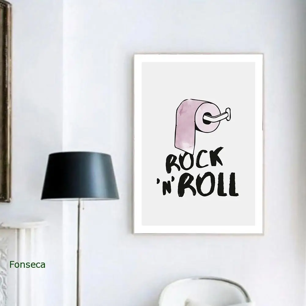 Забавный постер с надписью туалет в стиле рок-н-ролл, Минималистичная Картина на холсте для ванной комнаты, приятная художественная стена с цитатой Вывеска WC, домашний декор