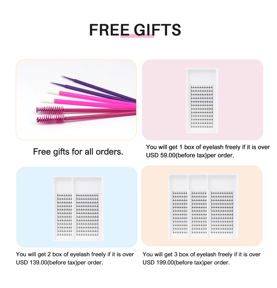 Когда вы заказываете у нас, мы отправим вам бесплатные подарки.О: бесплатные подарки для всех заказов.B: Вы получите 1 коробку ресниц, если она превышает 59,00 долларов США (до уплаты налогов) за заказ.C: Вы получите 2 коробки ресниц, если они превышают 139,00 долларов США (до уплаты налогов) за заказ.D: вы получите 3 коробки ресниц, если они превышают 199,00 долларов США (до уплаты налогов) за заказ.