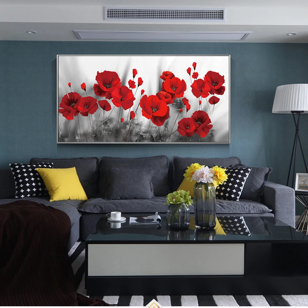 Картина маки, цветы, холст, цифровые плакаты и принты, картина на стену, красные цветы для гостиной, домашний декор, Куадрос