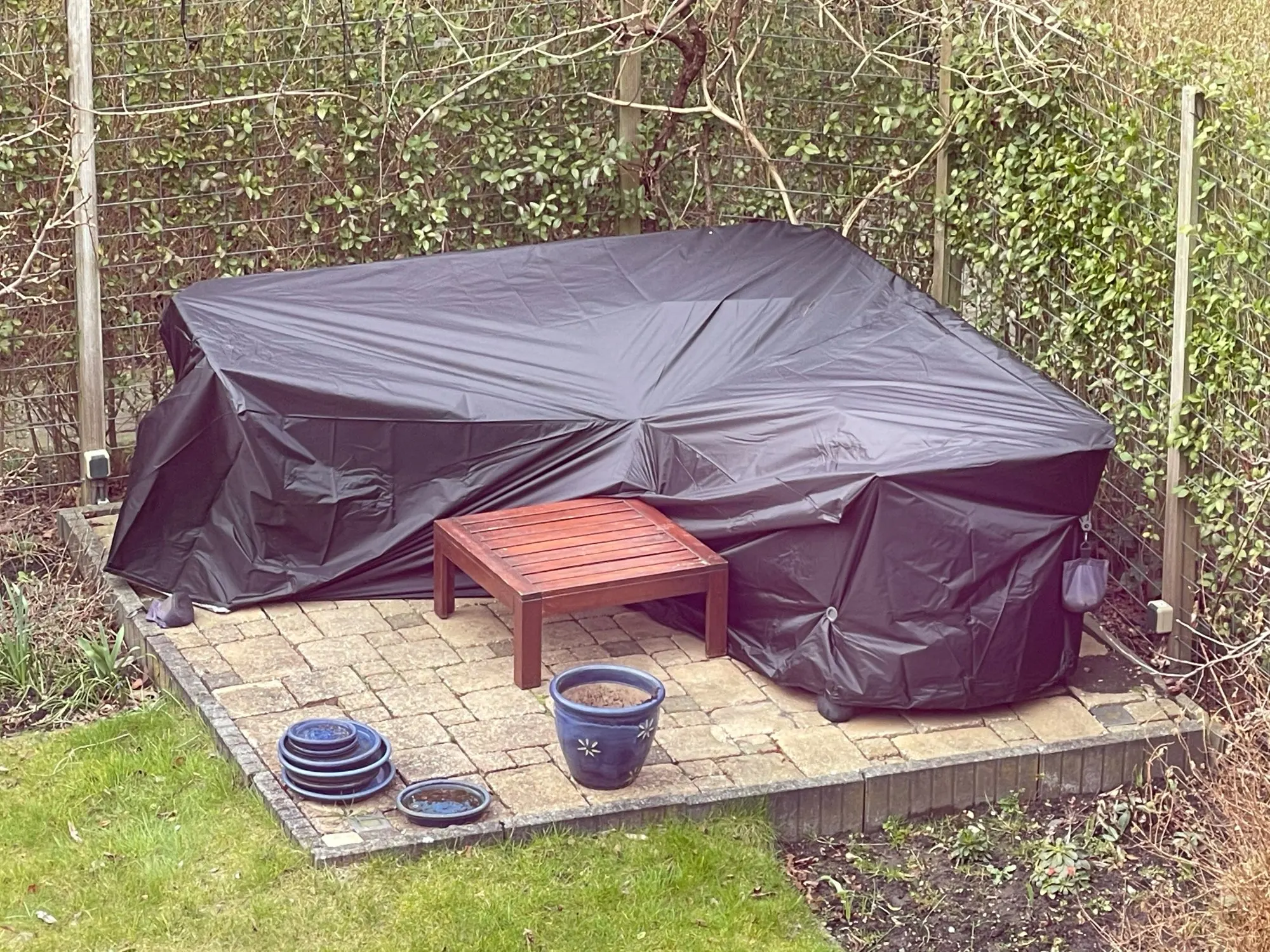 Чехол на заказ идеален, но на тонком шнуровке, который он быстро выдувает. К сожалению, тротуарная цепь моется, чтобы положить на спине, где вы тогда не можете достичь его без садового набора для перемещения.