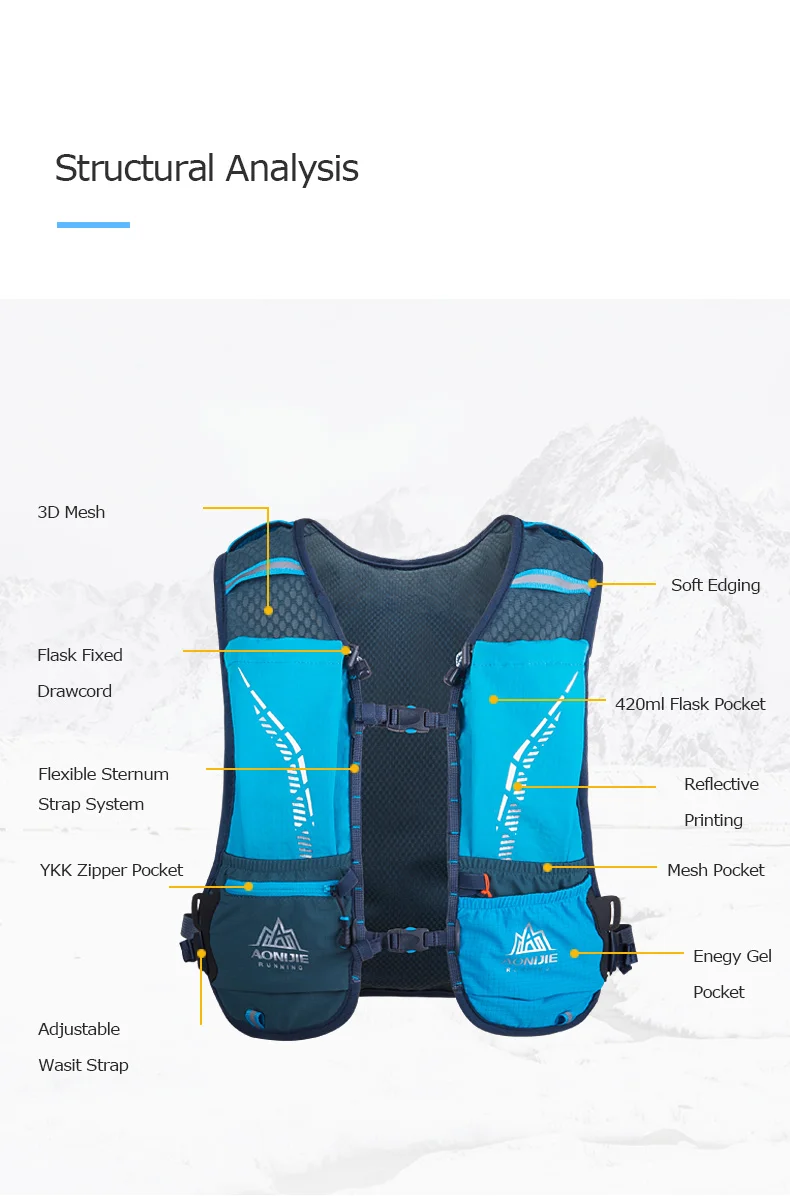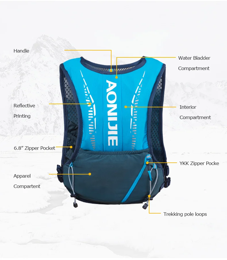 AONIJIE 5л гидратационный рюкзак:Свободно Передвигайтесь и носите все необходимое в течение дня по следу.Отправляйтесь на тренировку в течение всего дня или в технический поход: рюкзак 5L эффективно несет полный комплект. Легкая и удобная, эта сумка гарантирует, что вы полностью готовы к несколько часов активных приключений.ПреимуществаДинамичный Комфорт: этот пакет предназначен для того, чтобы вы могли двигаться быстрее в более комфортной, с легкой конструкцией жгута, открытой 3D сетки и регулируемыми растягивающимися ремешками TwinLink грудины ..Быстрый доступ: переднее хранилище позволяет быстро получить доступ к одежде, боковое основное отделение хранения удерживает гидратацию, а растягивающиеся карманы держат предметы на ходу в пределах досягаемости.Многоцелевой: пакет, который позволяет сделать больше, чем одно: Возьмите с собой дополнительные шестерни, такие как фляги, водный Пузырь, апприал, столбы или ледяные осиСпесификайтон:Бренд: AONIJIEТовар: Беговая гидратация BakcpackМодель: C9102 #Вес: approx.167gЕмкость: 5л (11 шт отсеков)Сетчатый материал: полиэстерТкань 1: нейлонТкань 2:85% нейлон, 15% спандексТкань 3: 85% нейлон, 15% спандексЦвет: синий, желтый, розовыйРазмер:Один размер: рекомендуемый Обхват груди: 72-128 см