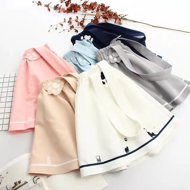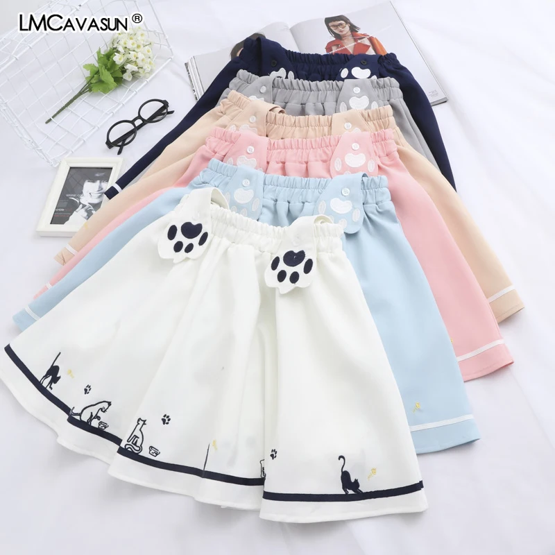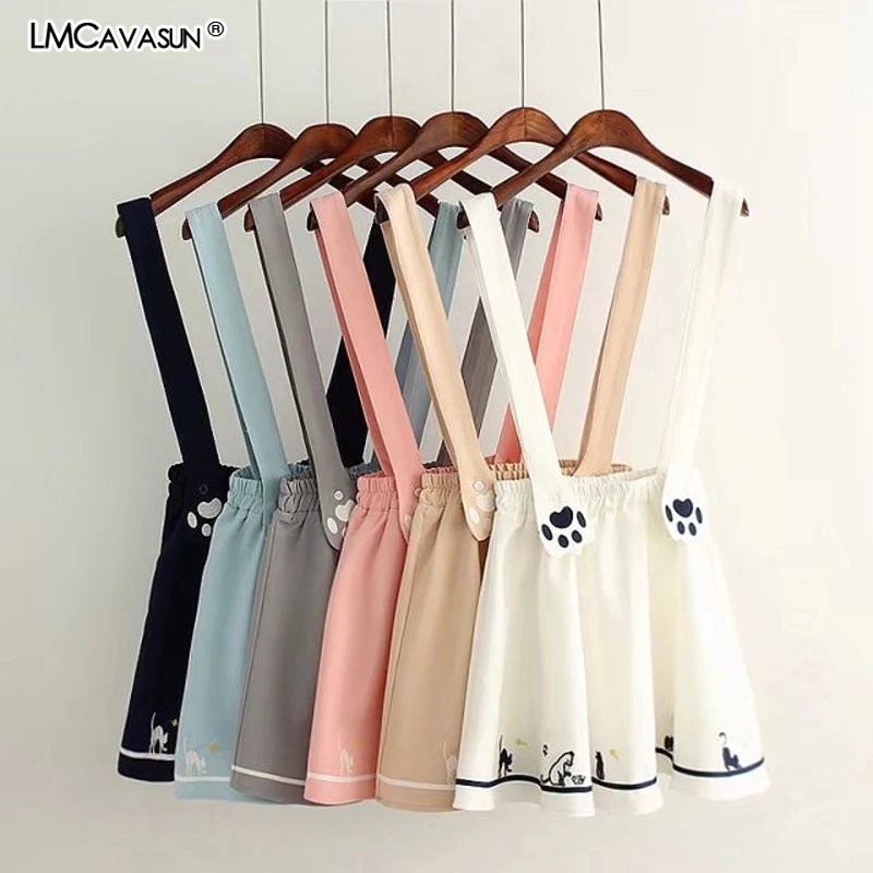 Юбка на бретелях LMCAVASUN, японская мини-юбка с вышивкой в виде кота, летняя юбка с высокой талией для студентов