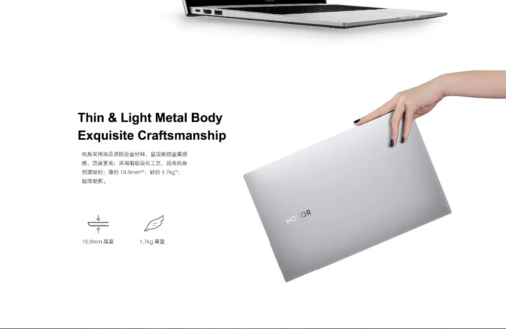 Honor MagicBook Pro имеет толщину корпуса 15,8 мм, вес голого металла 1,7 кг, а дорожный вес 1,84 кг. Он имеет определенные преимущества по сравнению с продуктами того же размера. Это очень портативный ноутбук.