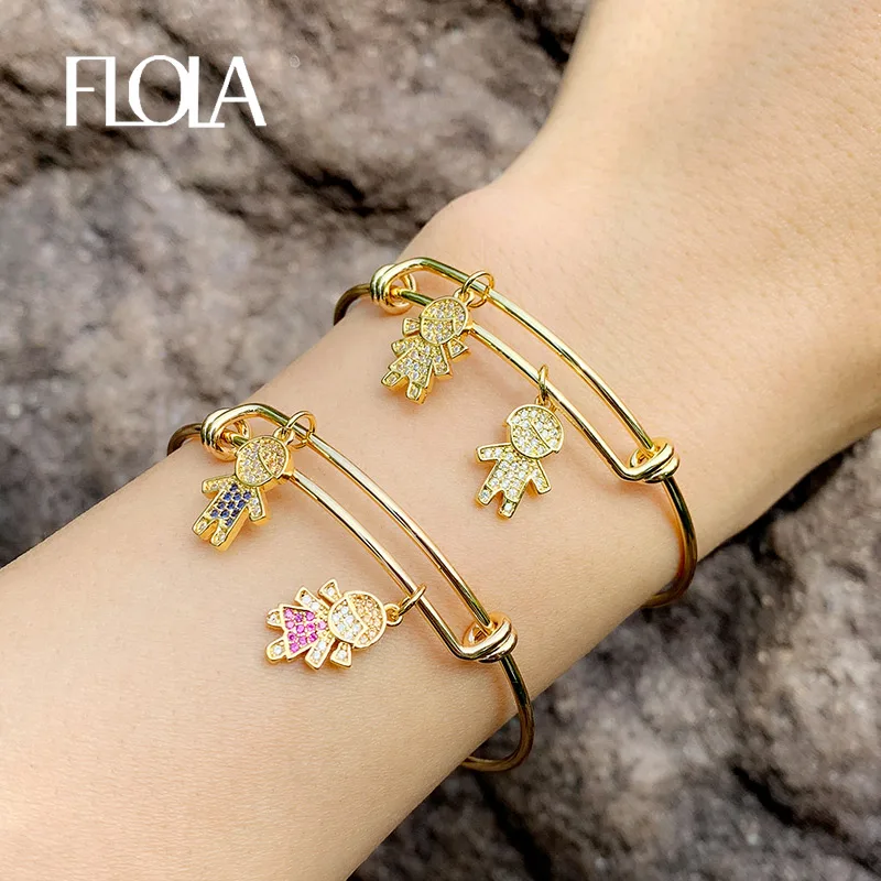 FLOLA золото пара шарм браслеты и браслеты для женщин с детьми Мальчики и девочки дружбы браслет циркония ювелирные изделия подарки brtc33