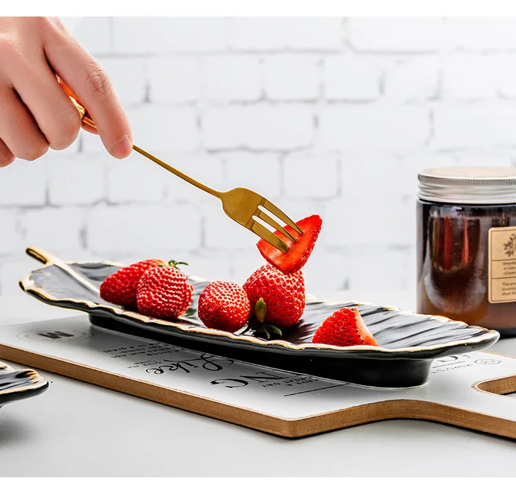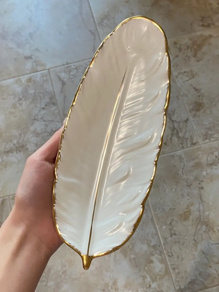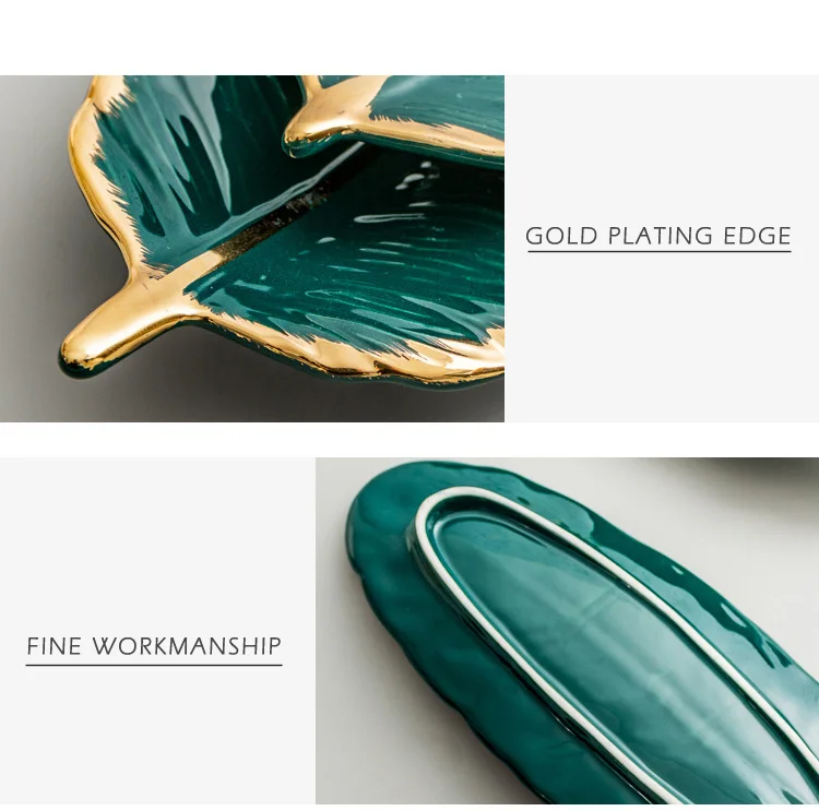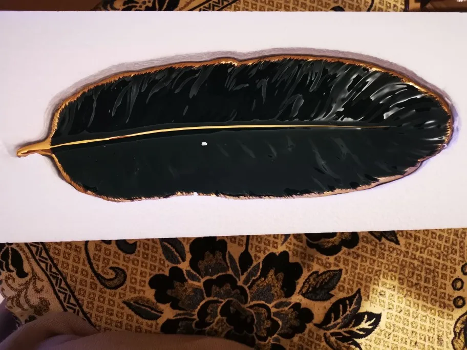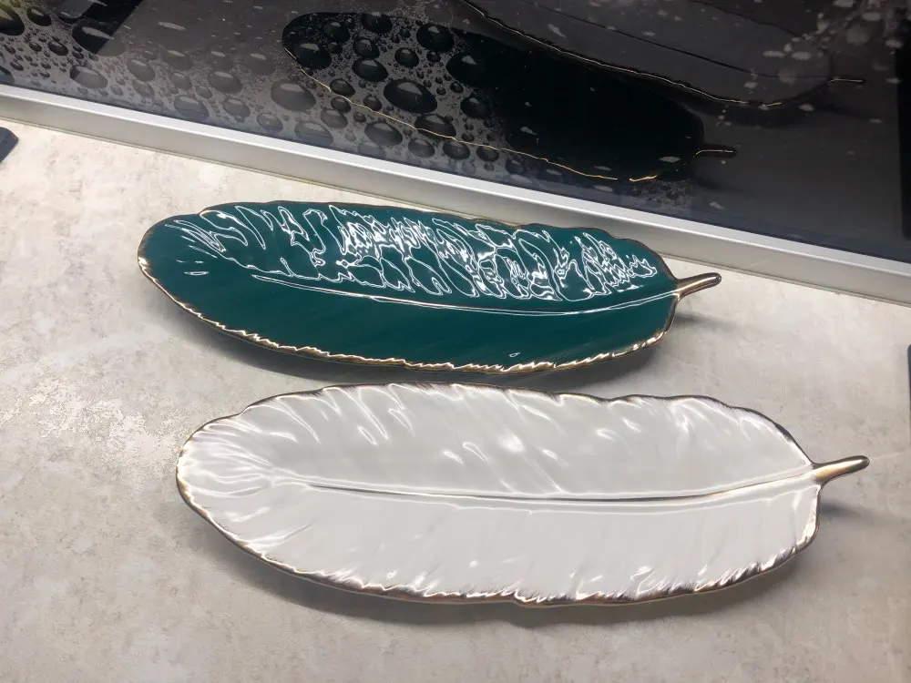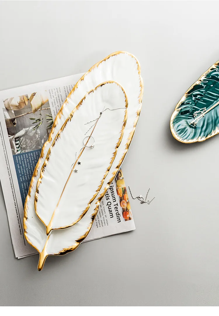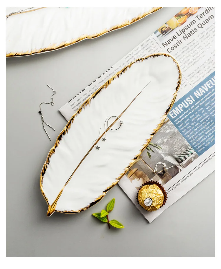 Набор керамических тарелок с золотым покрытием, модный дизайн с перьями, поднос для ювелирных изделий, столовые принадлежности, тарелка для фруктов приглушенной плотности, кухонная посуда