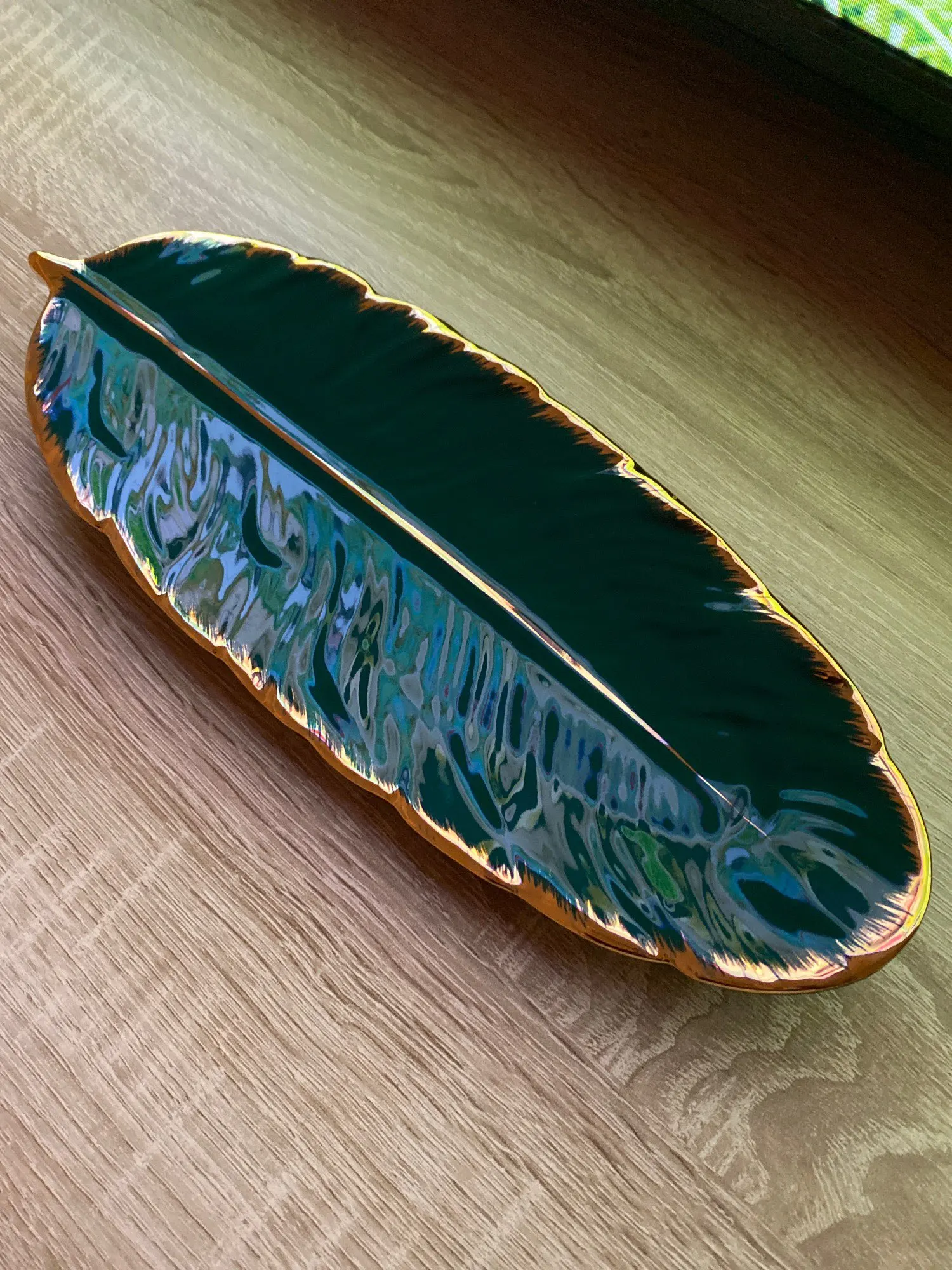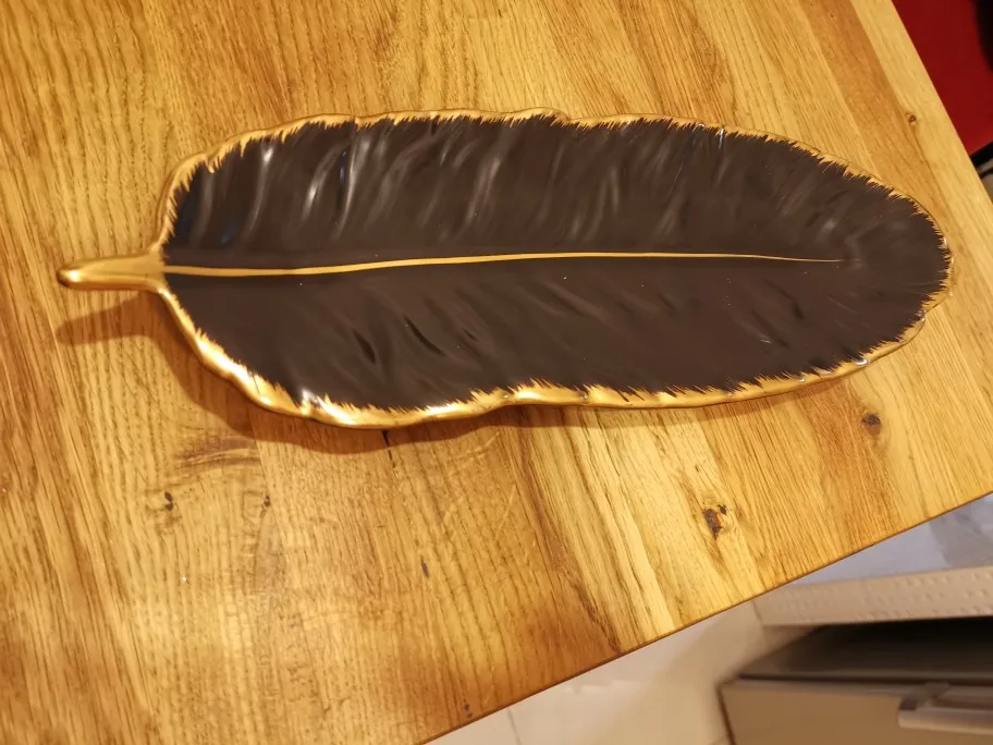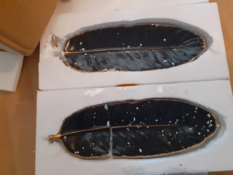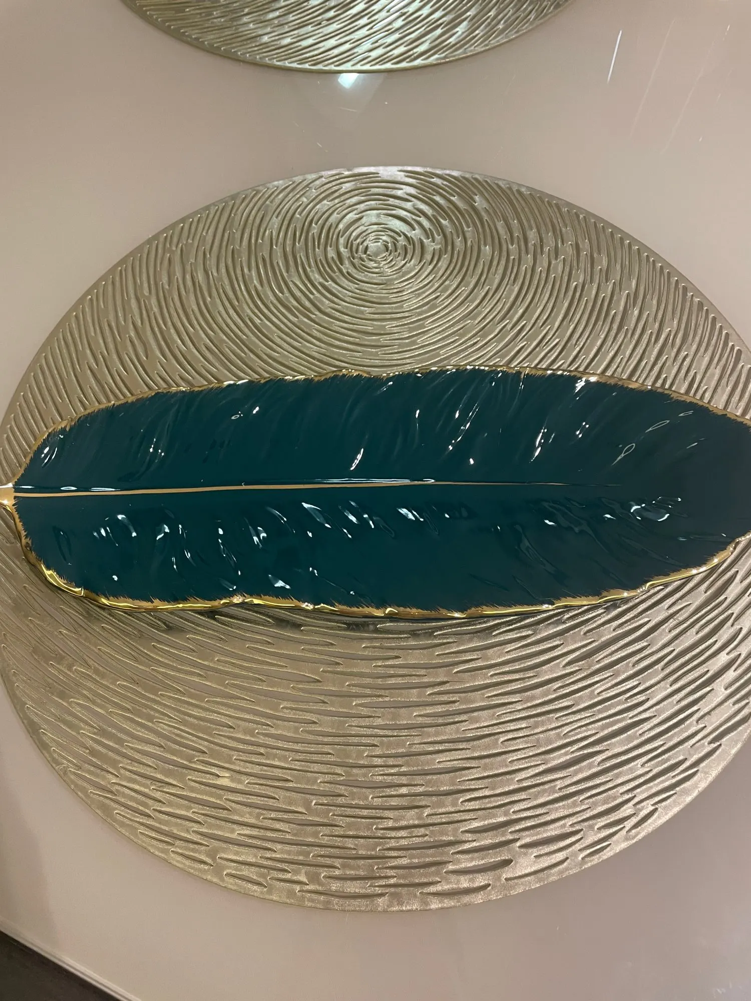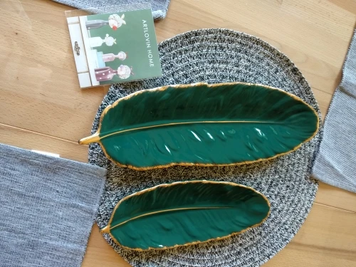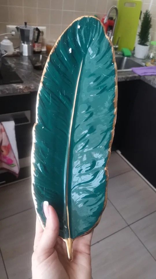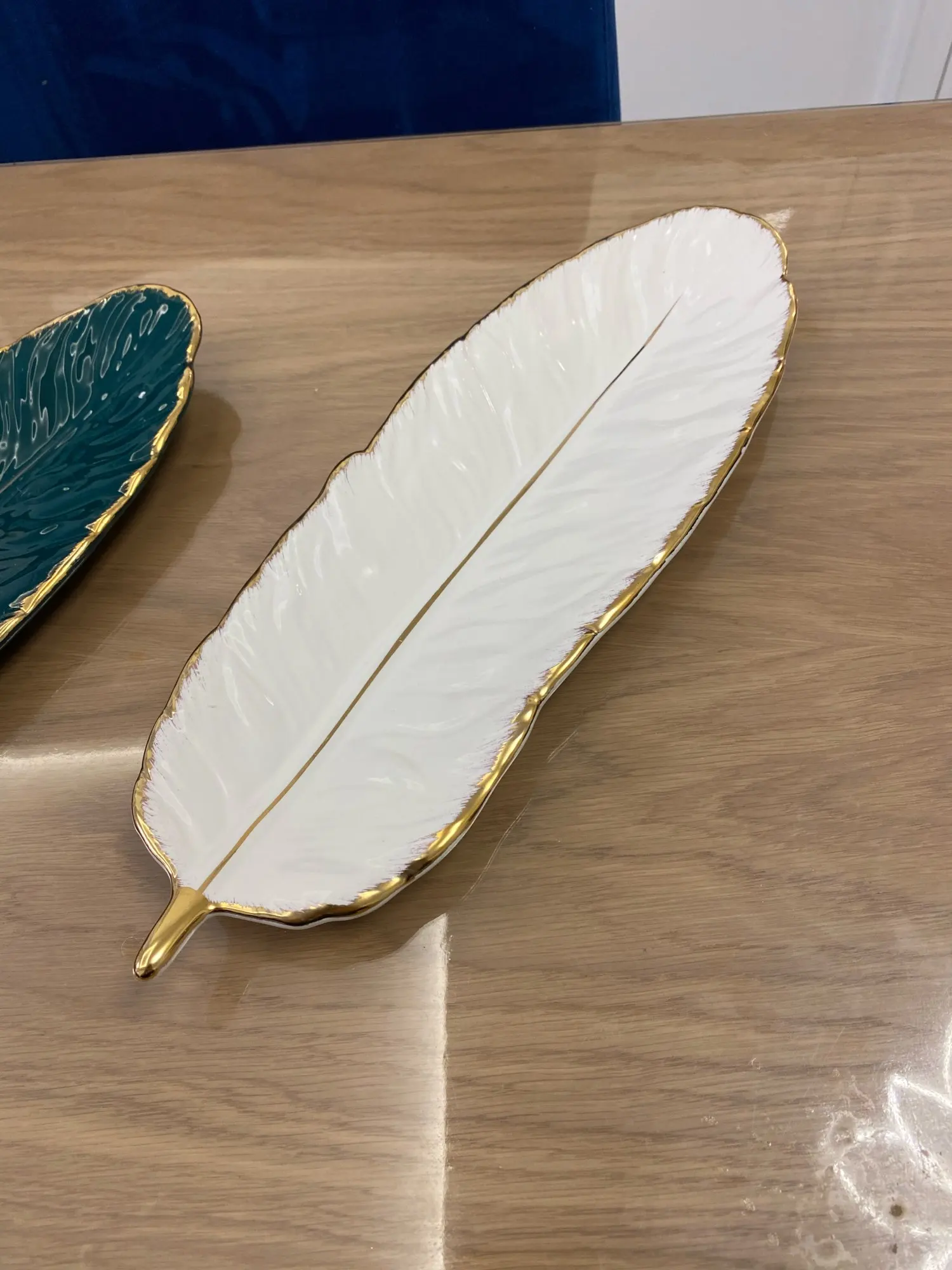 Набор керамических тарелок с золотым покрытием, модный дизайн с перьями, поднос для ювелирных изделий, столовые принадлежности, тарелка для фруктов приглушенной плотности, кухонная посуда