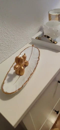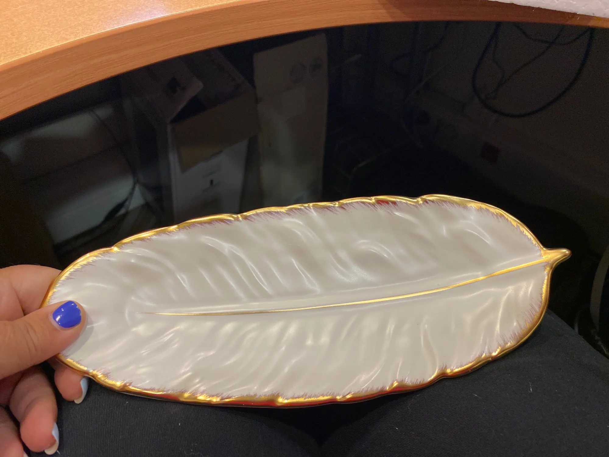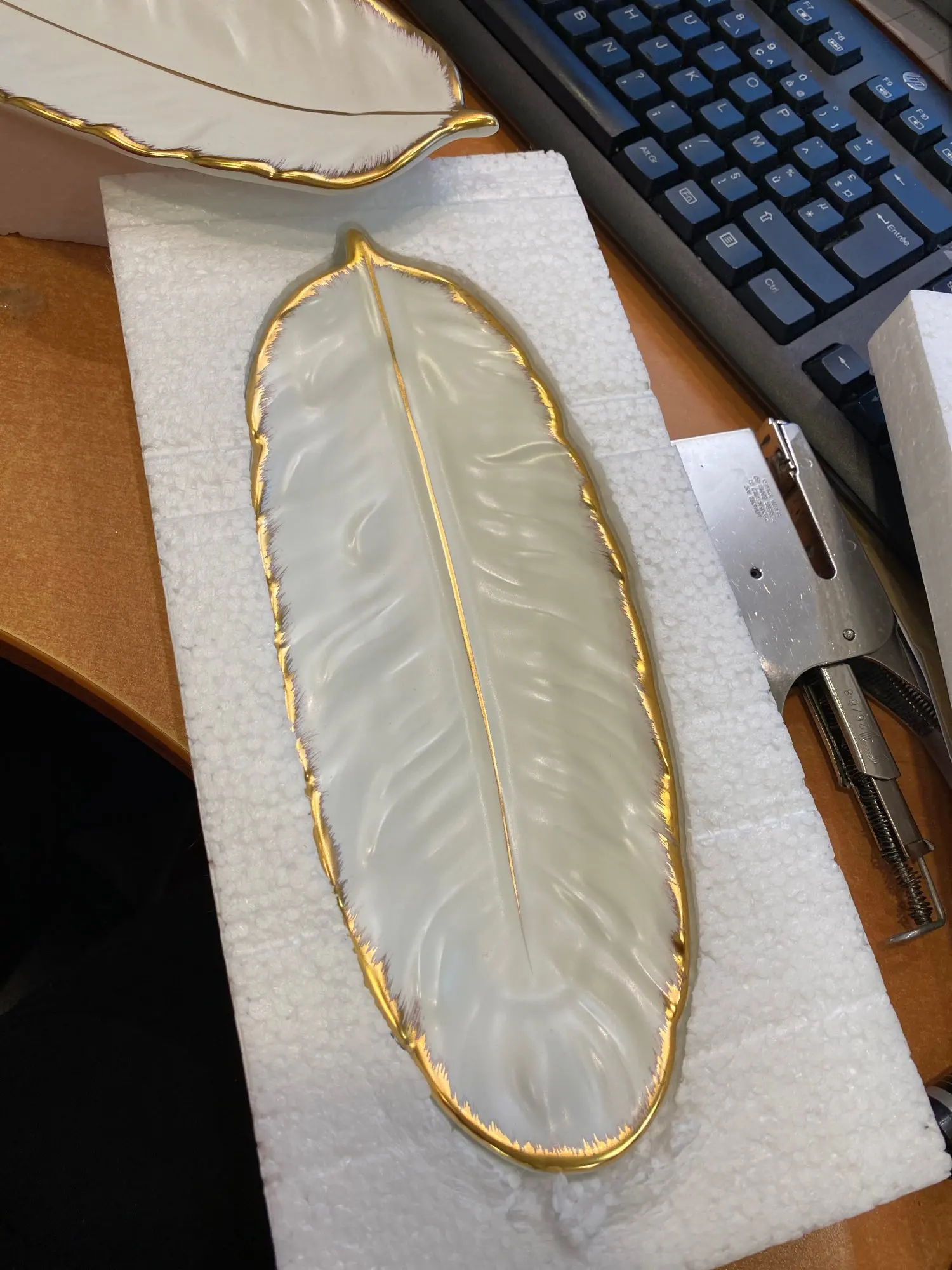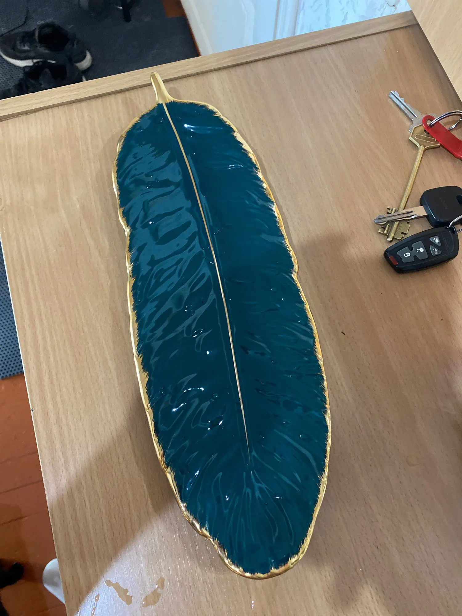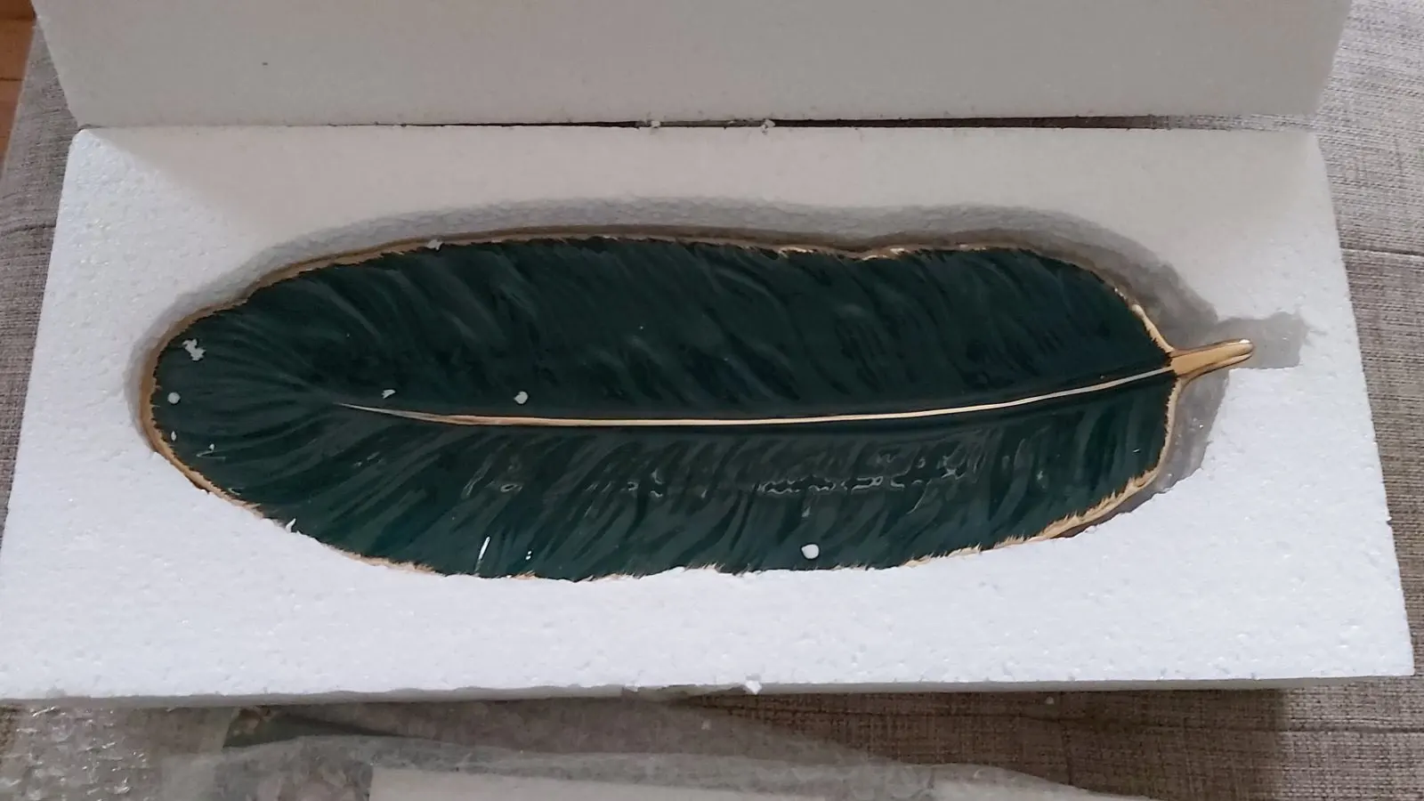 Набор керамических тарелок с золотым покрытием, модный дизайн с перьями, поднос для ювелирных изделий, столовые принадлежности, тарелка для фруктов приглушенной плотности, кухонная посуда