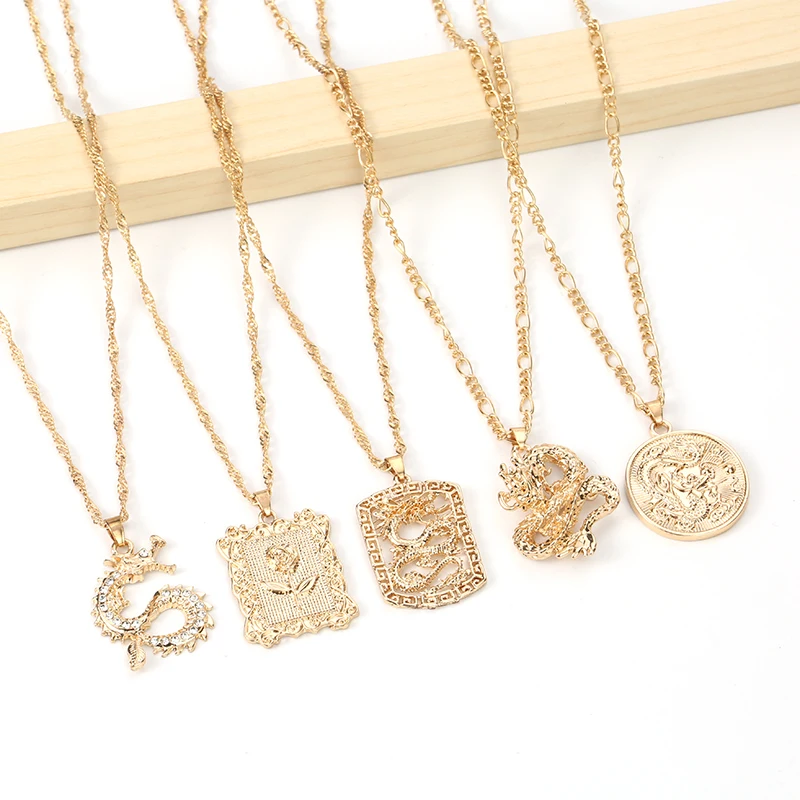 Ожерелье с подвеской в виде китайского дракона для женщин и мужчин,...