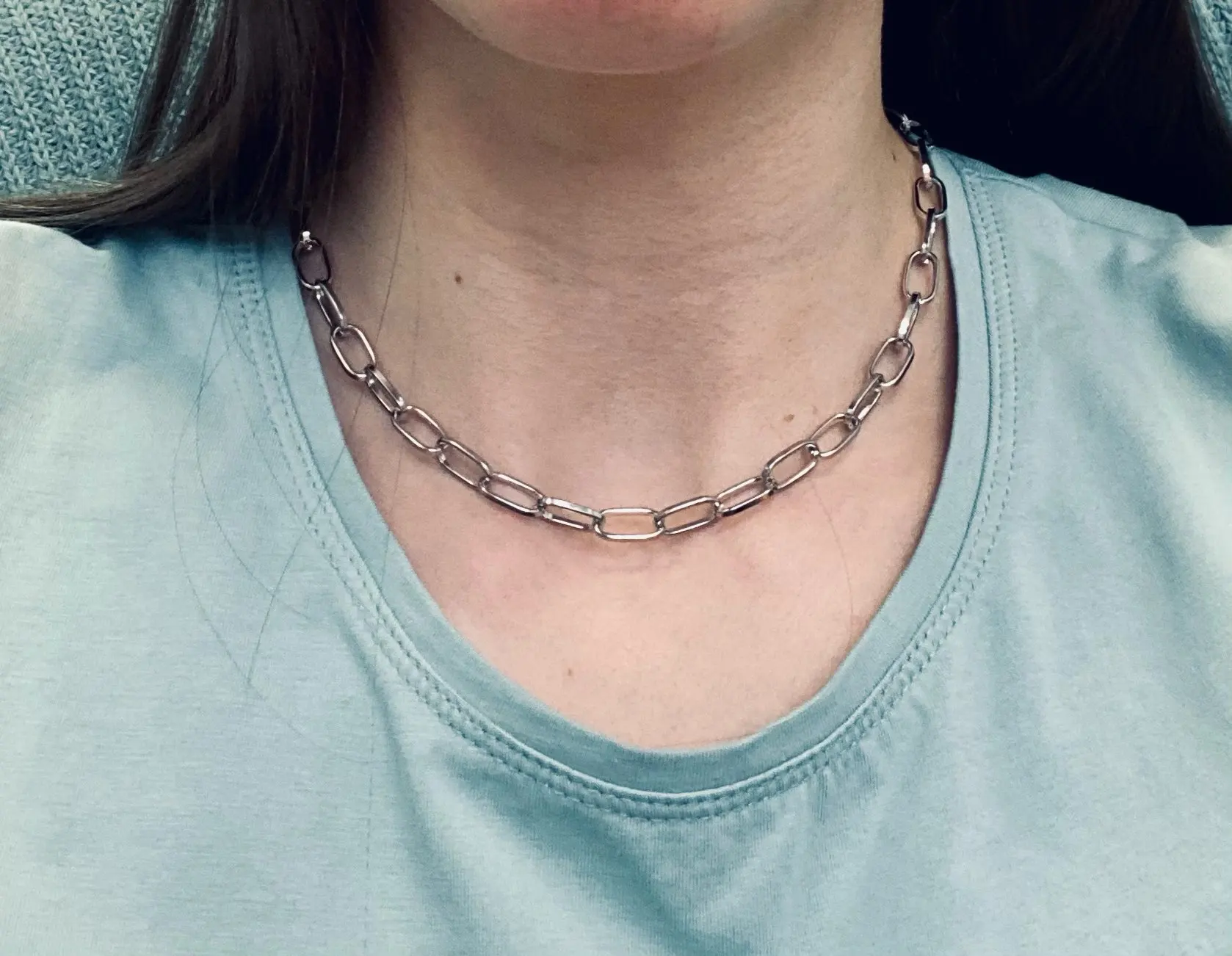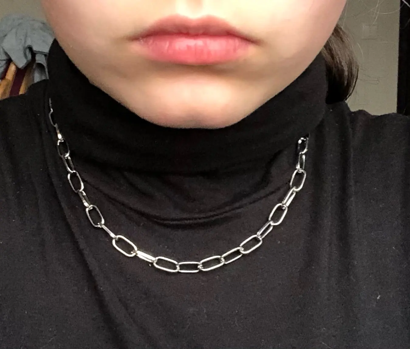 Очень маленькие звенья, и прилегает к шее, как чокер, а не как на фото