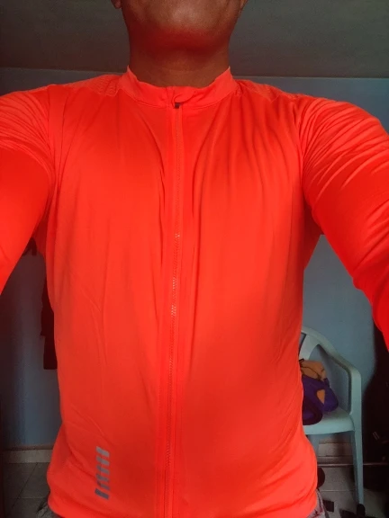 Отличный продукт. Цвет на самом деле очень приятный неоновый цвет. Размер L отлично подходит для меня. I am187cm и 77kg. Рукава немного на короткой стороне, но я высокий и тонкий, так что ожидалось. Красивые глубокие задние карманы и хорошая молния. Это легкий трикотаж, а не зимний теплый. Очень быстро, получил товар в течение 10 дней